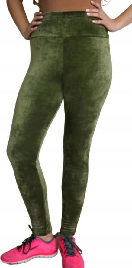LEGGINSY WELUROWE WYSOKI STAN SPODNIE Z PANELEM BAWEŁNA L/XL ZIELEŃ Góra Kalwaria