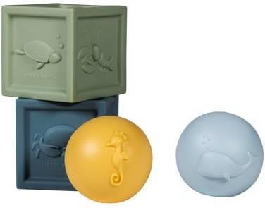 Zestaw 4 zabawek kąpielowych z kolekcji Ocean od Little Dutch to doskonały wybór dla Twojego dziecka podczas kąpieli i nie tylko. Ten uroczy zestaw składa się z 2 klocków i 2 kul z motywami zwierzątek morskich, które zachwycą malucha swoją piękną, stonowaną kolorystyką. Wszystkie zabawki zostały wykonane z bezpiecznego dla dzieci silikonu, co daje gwarancję bezpiecznej i przyjemnej zabawy. Silikon jest miękki w dotyku i idealny do gryzienia, co sprawia, że te zabawki są również świetnym wyborem dla rosnących ząbków. Ten zestaw kąpielowy nie tylko zapewni radość podczas kąpieli, ale również może być używany do zabawy poza nią oraz jako gryzaczki. Różnorodne kolory i struktury każdej z zabawek zapewniają wiele możliwości eksploracji i zabawy, rozwijając jednocześnie zmysły dziecka. Zestaw 4 zabawek kąpielowych z kolekcji Ocean od Little Dutch to nie tylko świetna rozrywka, ale także doskonały sposób na rozwijanie umiejętności sensorycznych i koordynacji dziecka. Niech Twoje dziecko odkrywa fascynujący świat zwierzątek morskich podczas kąpieli i cieszy się radosną i bezpieczną zabawą z tym uroczym zestawem. Rekomendowany wiek: od 5-go mięsiąca Wymiary: 23 x 17 x 7 cm Materiał: silikon Zgodność z normą: EN-71-1-2-3 Little Dutch to holenderska firma rodzinna, prowadzona przez małżeństwo, które wkłada całe serce w tworzenie produktów dla najmłodszych. W ofercie marki znajdują się doskonałej jakości tekstylia, produkowane z bawełny organicznej z certyfikatem Oeko-tex, takie jak ręczniki, śpiworki do spania, otulacze, akcesoria do pokoików dziecięcych oraz zabawki sensoryczne dla niemowląt, jak również zabawki, czy pojazdy wytwarzane z drewna. Produkty Little Dutch cechuje spokojna, pastelowa kolorystyka.