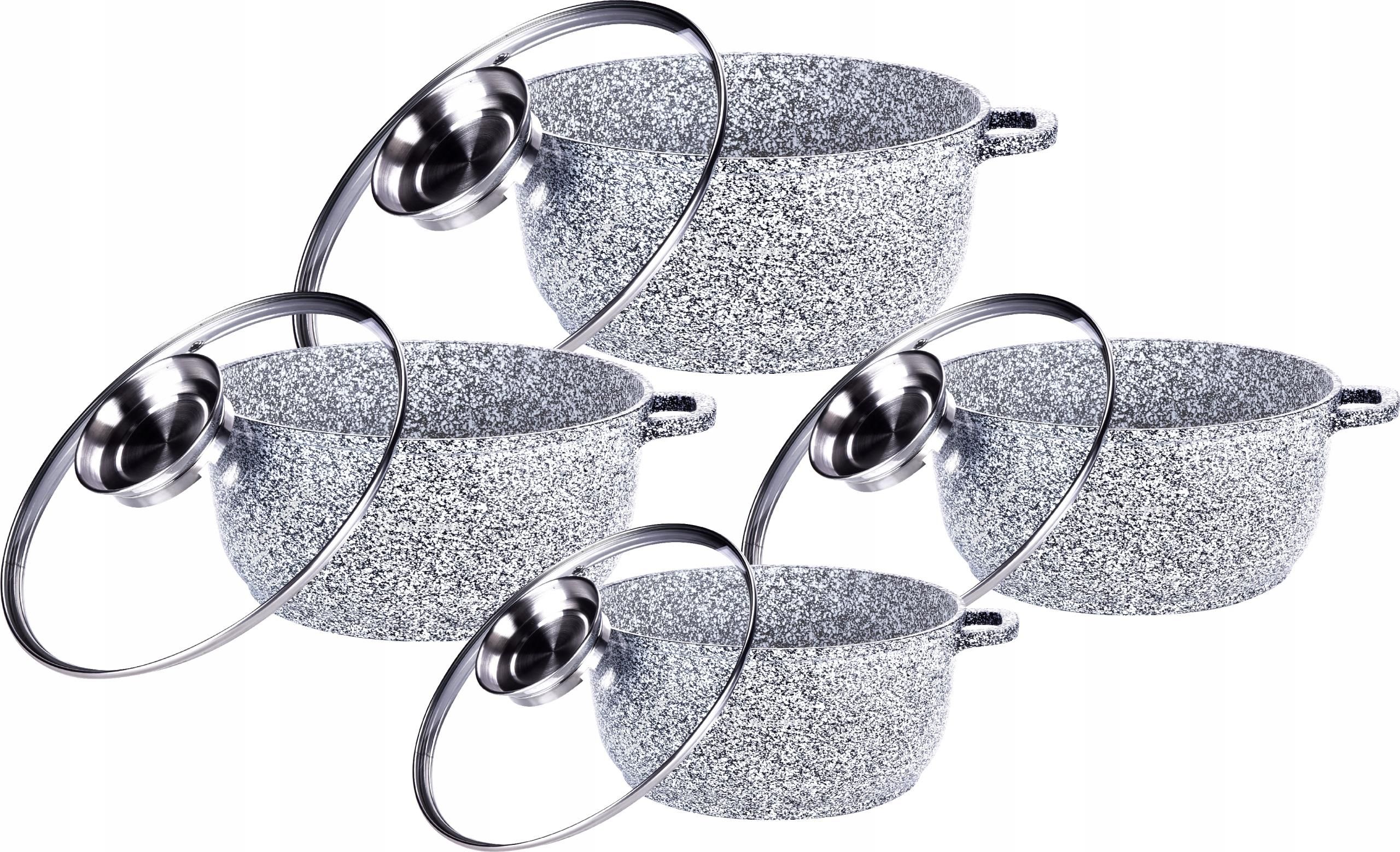 Zestaw Garnków Granitowych 8el AROMA Indukcja Gaz 16/20/24/28 cm Zestaw Garnków Granitowych 8el AROMA Indukcja Gaz 16/20/24/28 cm Zestaw Garnków Granitowych 8el AROMA Indukcja Gaz 16/20/24/28 cm Zestaw czarnych garnków aluminiowych (4 szt.) z powłoką marmurkową Garnek z pokrywką: 16x7,5 cm, …