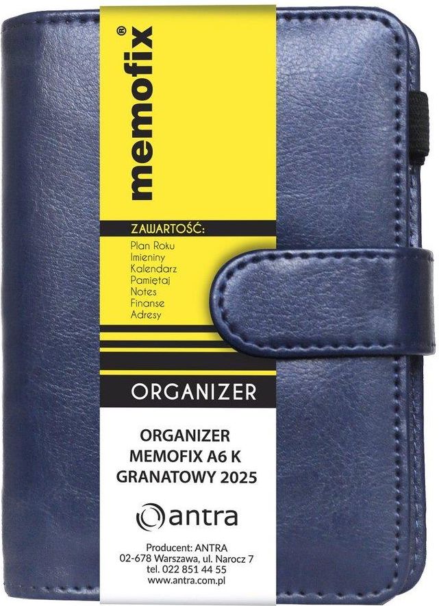 Organizer 2025 Memofix w Kolorze Granatowym Odkryj wyjątkowy Organizer 2025 Memofix, który stworzony jest, aby pomóc Ci zarządzać czasem i zadbać o organizację dnia. Ten produkt posiada komplet praktycznych wkładów, które uczynią Twoje planowanie łatwym i przyjemnym. Zawartość Wkładów Kalendarz 2025 TNS: umożliwia rozpisanie tygodnia na stronie, co ułatwia szybkie przeglądanie planów. Notes: doskonały do spisywania myśli i pomysłów. Finanse: pozwala śledzić wydatki i planować budżet. Adresy: idealny do przechowywania ważnych kontaktów. Pamiętaj: sekcja na notatki o istotnych sprawach. Praktyczne Detale Organizer charakteryzuje się kompaktowym rozmiarem 145x100 mm, co czyni go poręcznym i łatwym do noszenia w torebce czy plecaku. Dodatkowe funkcje takie jak gumka na długopis oraz kieszonka na wizytówkę podnoszą jego funkcjonalność. Stylowy Wygląd i Bezpieczeństwo Organizer posiada elegancki ring, ułatwiający przewracanie stron, oraz solidne zamknięcie na zatrzask, które chroni Twoje notatki. Ciesz się komfortem i wygodą, jakie oferuje ten praktyczny produkt. EAN: 5904210086715