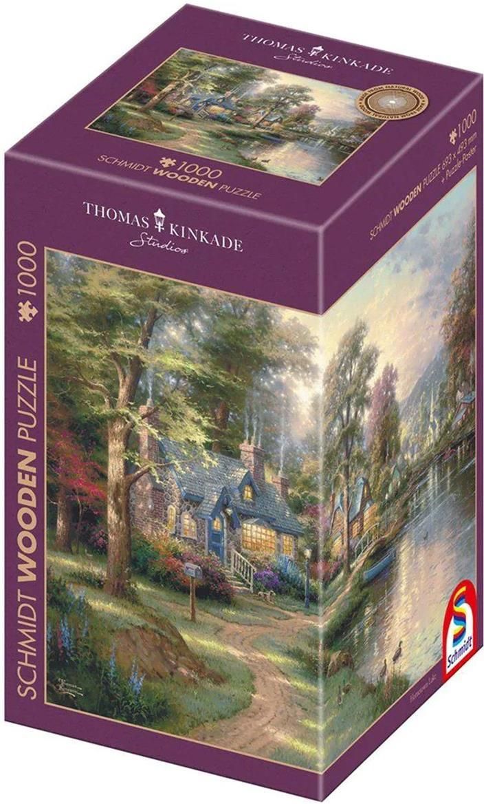 Schmidt wzbogaca swoją ofertę o niepowtarzalną, całkiem nową serię. Przed Wami drewniane puzzle o nieregularnych kształtach. Wykonane z wysokiej jakości drewna, które jest mocne i trwałe, przez co posłuży przez wiele lat. Zastosowana płyta HDF powstaje ze sprasowanych włókien drzewnych pochodzących z różnych gatunków drewna, takich jak sosna, klon, olcha, brzoza, buk, które wywodzą się z krajów UE. Elementy są wycinane laserowo, dzięki czemu cięcie jest precyzyjne i uzyskuje się czyste krawędzie. Puzzle marki Schmidt ze znakiem Premium Quality to produkty wprowadzające zupełnie nową jakość do tego asortymentu. Dzięki specjalnie zaprojektowanej tekturze wyróżnia je przede wszystkim perfekcyjna spójność, a wyjątkowe i niespotykane grafiki zwiększają ich atrakcyjność. Puzzle pokryte są matowym lakierem, który nie odbija światła. Dzięki wykorzystaniu w procesie produkcji niezwykle cienkich wykrojników, puzzle Premium Quality są idealnie do siebie dopasowane. Mówi się, że Thomas Kinkade maluje światłem. Odgrywa ono kluczową rolę w jego impresjonistycznych obrazach: prześwituje przez drzewa, odbija się w czystej wodzie potoku, zagląda przez okna domu w ciemną noc. Prawdziwa poezja chwili. Nic dziwnego że Thomas Kinkade jest jednym z najbardziej popularnych artystów naszych czasów. I dla wszystkich tych, którzy nie mogą sobie pozwolić na oryginały, przedstawiamy jego prace w postaci puzzli. Wymiary: 275x170 mm Opakowanie: pudełko