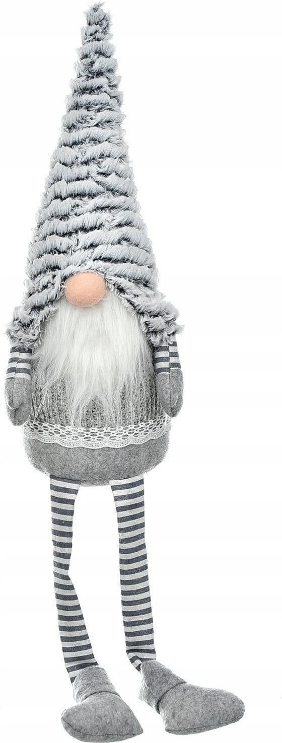Długość nóżek: 30 cm. Skrzaty to dobre duszki każdego domu. Dzięki obciążeniu figurka siedzi stabilnie. Miękkie pluszowe nogi śmiesznie zwisają. Skrzat najlepiej czuje się na kominku, w pobliżu pachnącej choinki jak i w dziecięcym pokoju. kolor: odcienie szarości piękna, futerkowa czapka