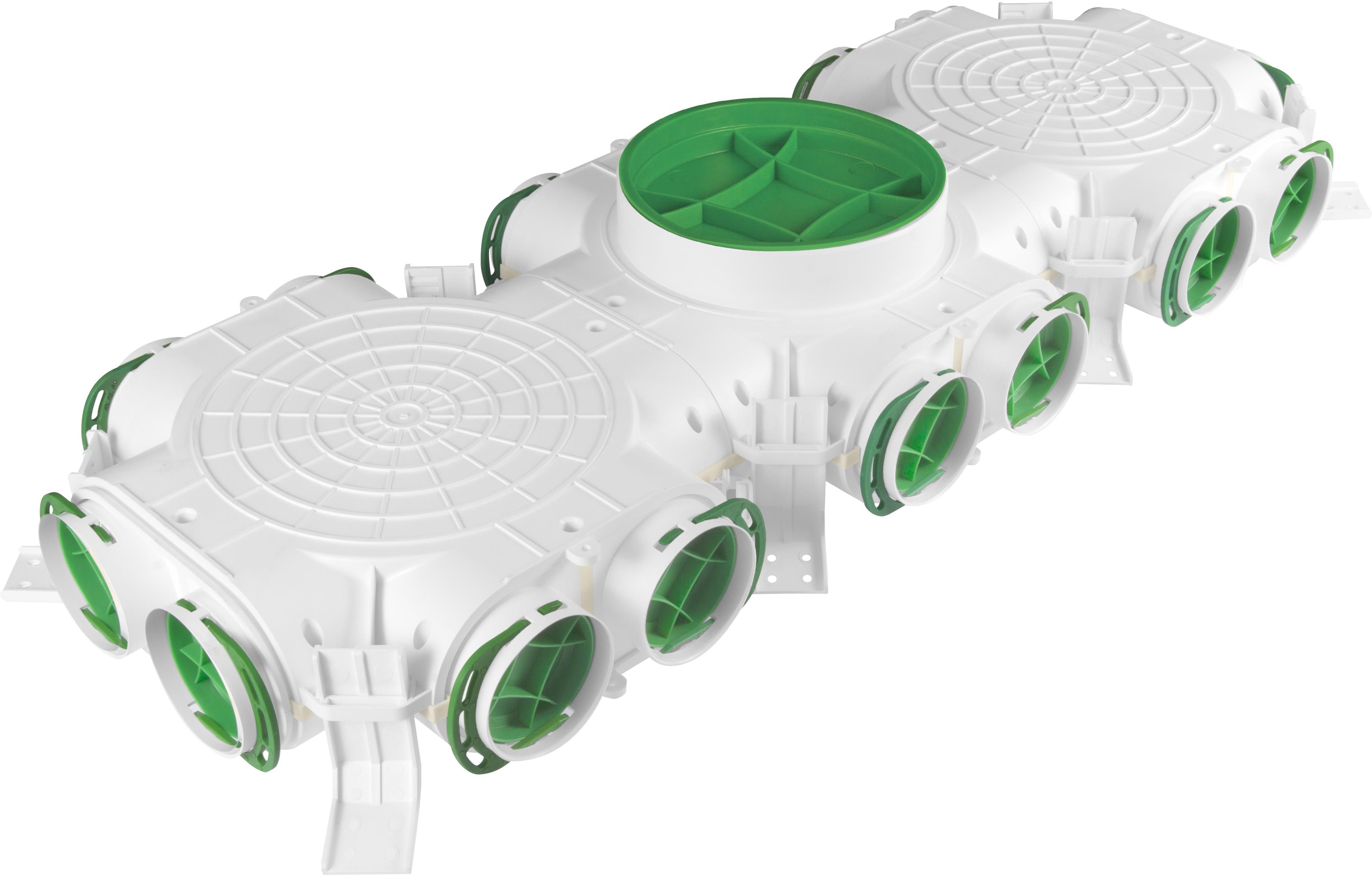 SKRZYNKA ROZDZIELCZA VCB200-16 AWENTA PRO Skrzynka rozdzielcza Awenta PRO VCB200-16 umożliwia podłączenie do 16 kanałów wentylacyjnych Ø75 mm. Kanały nieużywane mogą zostać zamknięte dołączonymi do zestawu zaślepkami. Skrzynka występuje z przyłączem do centrali o średnicy Ø200 mm. ILOŚĆ PRZYŁĄCZY …