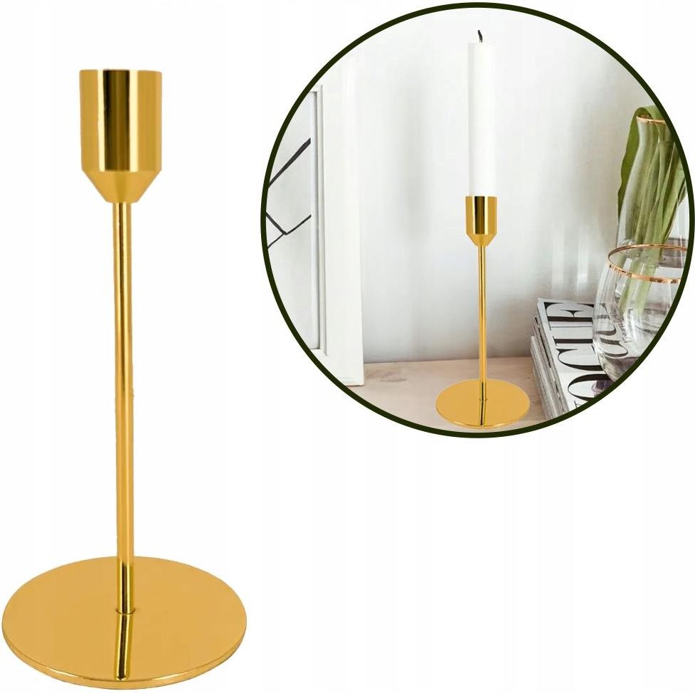 Świecznik złoty prosty na długie świece metalowy Altom Design 17 cm 1772082637 Góra Kalwaria