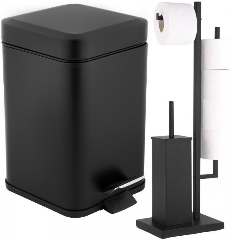 Zestaw Łazienkowy Yoka Home – Czarny Mat: Kwadratowy Kosz 3L i Stojak na Papier ze Szczotką WC (3w1) Góra Kalwaria