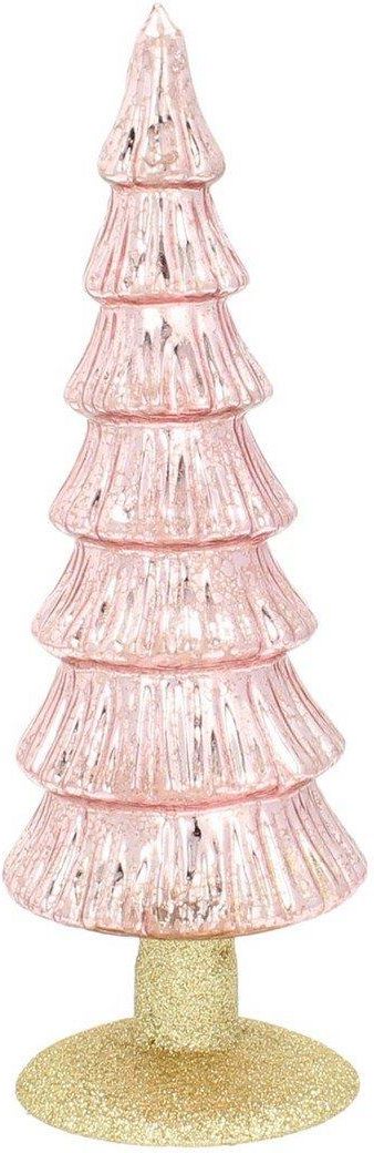 Choinka szklana w kolorze różowym na brokatowej podstawie. Wprowadź do swojego wnętrza magiczną atmosferę Bożego Narodzenia. Szklana choinka w kolorze jasnoróżowym na brokatowej podstawie to wspaniały wybór na dekorację świąteczną, która jest wyrazem piękna i dbałości o detale. Ta urocza ozdoba w kilka chwil stworzy wyjątkowy świąteczny klimat i będzie pięknym uzupełnieniem Twojego stołu czy półki nad kominkiem. Dekoracja świąteczna Pink Christmas Tree wykonana została ze szkła, a jej radosne połączenie kolorystyczne sprawia, że chcesz dzielić się radością z rodziną i bliskimi. Dekoracje świąteczne najlepiej prezentują się w duecie! Sprawdź nasze inne propozycje ozdób na święta!Wymiary: śr. 9 cm, wys. 28 cm.