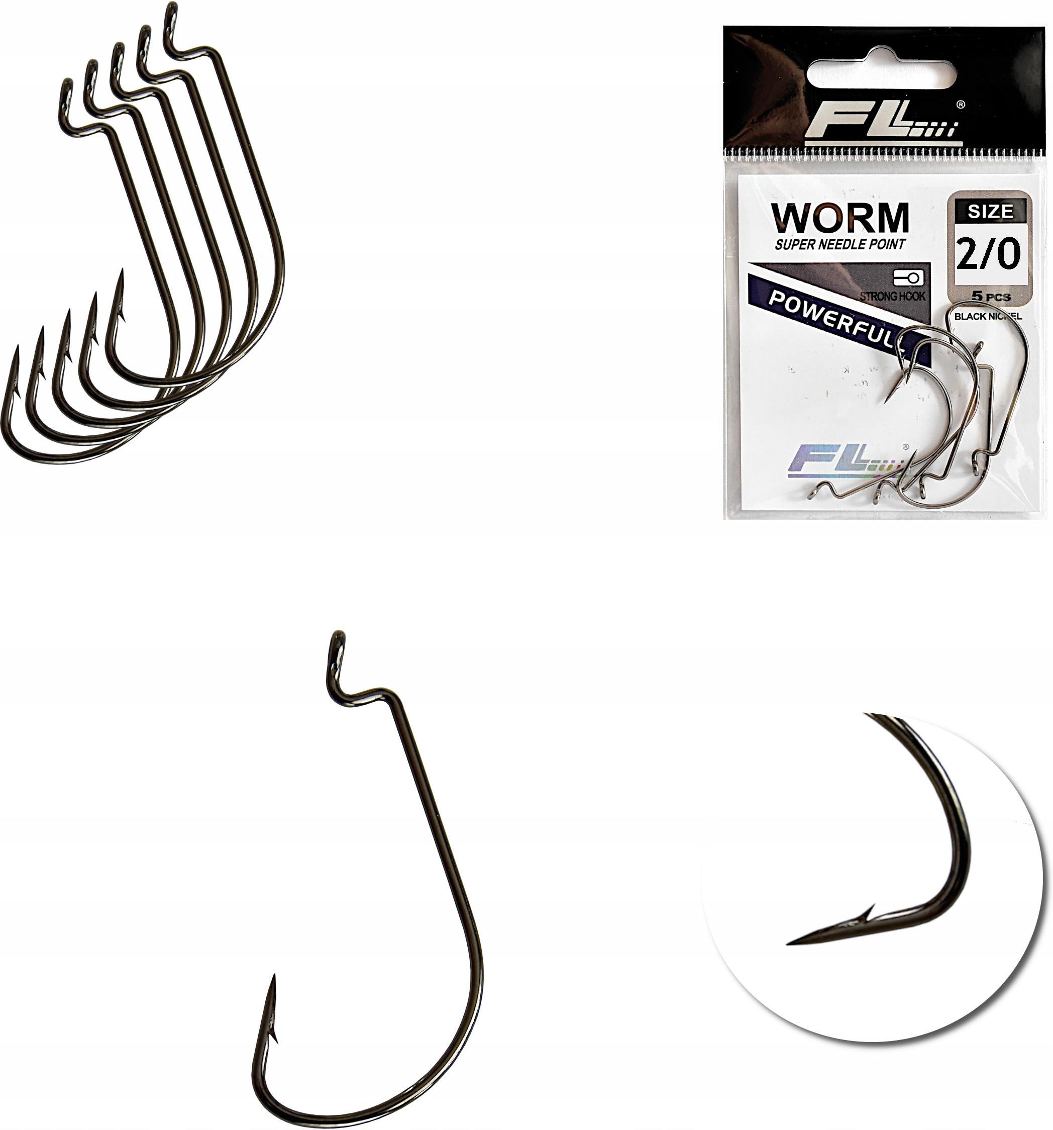 Fl Haczyk Haczyki Worm Nr 2/0 B. Nickel 5szt. Góra