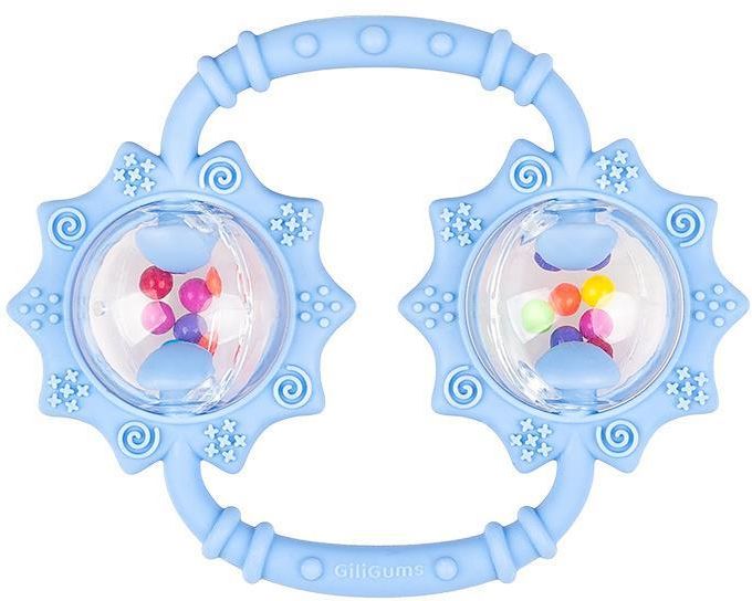 Podwójna grzechotka "Słoneczniki" – zabawa i ulga dla ząbkującego malucha Ta urocza grzechotka w kształcie dwóch połączonych słoneczników to idealna zabawka dla najmłodszych! Zapewni maluchowi rozrywkę i przyniesie ukojenie obolałym dziąsłom podczas ząbkowania. Cechy produktu: Wesołe grzechotanie – dwie kule wypełnione kolorowymi koralikami wydają przyjemne dźwięki, które przyciągną uwagę dziecka. Kojące wypustki – miękkie obręcze z wypustkami o różnych kształtach delikatnie masują dziąsła, przynosząc ulgę w czasie ząbkowania. Ergonomiczny kształt – idealnie dopasowany do małych rączek, ułatwia chwytanie i manipulowanie zabawką. Bezpieczne materiały – stworzone z myślą o najmłodszych, w pełni bezpieczne do gryzienia i zabawy. Dla dzieci od 3. miesiąca życia Podwójna grzechotka "Słoneczniki" to nie tylko źródło radości, ale także wsparcie w trudnym okresie ząbkowania. Doskonały towarzysz dla każdego malucha!