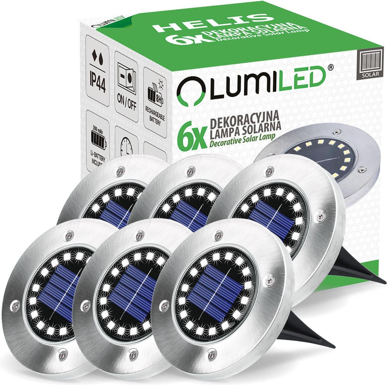 Zestaw 12x Lampki Solarne Ogrodowe LED HELIS Wbijane Dyski Dogruntowe 4000K IP44 LUMILED Główne cechy produktu Akumulator:1,2V NI-MH 600mAh Monokrystaliczny panel solarny - wyjątkowa trwałość, odporność na warunki atmosferyczne i zmienne temperatury Czas ładowania lampy: do 8h Czas pracy lampy: do …