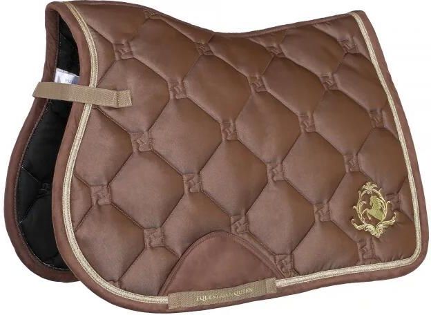 Czaprak dla konia Equestrian Queen Riga 24AW ujeżdżeniowy brązowy DR Czaprak EQ.Queen Riga to połączenie stylu i funkcjonalności. Wykonany z oddychającego materiału, zapewnia doskonałą cyrkulację powietrza i komfort podczas jazdy. Luksusowe wykończenie z ozdobnym sznurkiem oraz subtelne logo EQ.Queen nadają mu elegancki wygląd. Czaprak jest dobrze wyprofilowany, co zapobiega przesuwaniu się pod siodłem, a dodatkowe paski na rzepy ułatwiają jego stabilne przymocowanie. Idealny wybór na treningi i zawody dla wymagających jeźdźców, którzy cenią zarówno styl, jak i wygodę swojego konia. Zdjęcia przedstawiają czaprak w rozmiarze VS Producent: Equestrian Queen