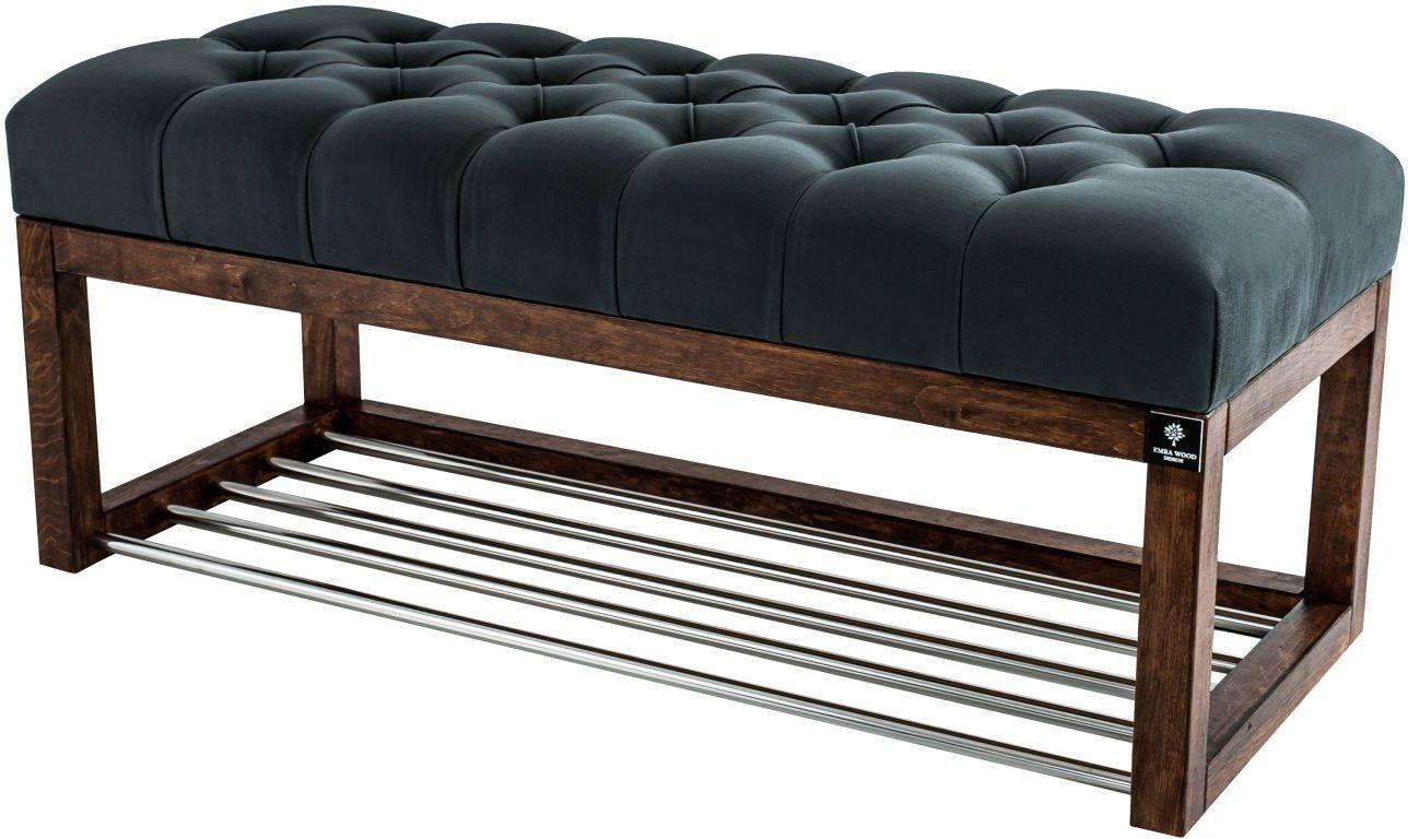 Ławka Pikowana na Buty z Siedziskiem kolor Grafitowy tkanina Casablanca 2315, Stelaż Drewno Lite Olcha Kolor Orzech Bejca 22-62, Model LPP-4 Drewniana, praktyczna ławka pikowana na buty z siedziskiem, która dopełni aranżację każdego przedpokoju. Ławka pikowana wyposażona jest w jeden poziom rurek. …