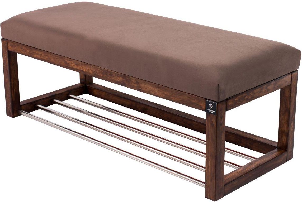Ławka Tapicerowana na Buty z Siedziskiem kolor Brązowy tkanina Casablanca 2306, Stelaż Drewno Lite Olcha Kolor Orzech Bejca 22-62, Model LPG-4 Drewniana, praktyczna ławka tapicerowana na buty z siedziskiem, która dopełni aranżację każdego przedpokoju. Ławka tapicerowana wyposażona jest w jeden poziom rurek. Siedzisko zostało wykonana z miękkiej pianki a obicie wykonane jest z najwyższej jakości materiałów dlatego jest łatwiejsze do czyszczenia i bardziej odporne na rozciąganie i inne czynniki mechaniczne. Tkaniny stosowane przez Nas są nie tylko mocne i trwałe, ale też bardzo miłe w dotyku. Stelaż drewniany został wykonany z wyselekcjonowanego drewna litego grubości 4 centymetrów. ​​