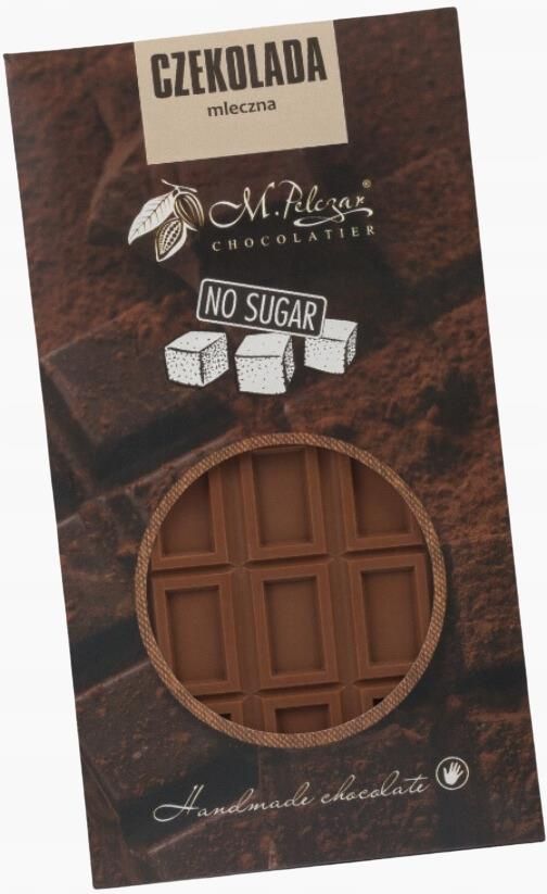 Czekolada mleczna bez cukru 45g Majstersztyk sztuki cukiernictwa ✔️ Od Mistrza Polski Cukierników - Mirosława Pelczara ✔️ Rzemieślnicze wykonanie Rozpływająca się w ustach rozkosz, którą oferuje ten ręcznie wytwarzany w M.Pelczar Chocolatier delikates, jest prawdziwym majstersztykiem cukiernictwa …