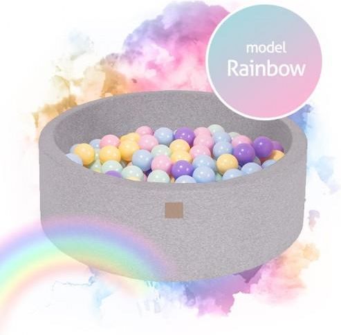 MeowBaby® Suchy Basen z Kulkami 40cm, Model Rainbow To gotowy zestaw - jasnoszary basen + piłeczki, aż 250 sztuk! Kolory piłeczek: babyblue, miętowy, pastelowy róż, pastelowy żółty, wrzosowy Suchy basenik z kolorowymi kuleczkami to prawdziwy bestseller wśród dzieci! Kto nie lubi pływać i nurkować w piłkach? Nasze baseny z piłkami zostały zaprojektowane z myślą o najmłodszych. Idealnie sprawdzają się podczas zabawy, jak również są niezwykle przydatne w terapii integracji sensorycznej. Dziecko w zależności od wieku, podczas zabawy piłeczkami ćwiczy umiejętności motoryczne, umacnia chwyt, poznaje kolory oraz rozwija koordynację wzrokowo-ruchową. Piłeczki do suchego basenu mają idealnie okrągły kształt, dzięki czemu mieszczą się w dłoni dziecka. Suchy basen MeowBaby® został wykonany z miękkiej antyalergicznej pianki, co gwarantuje bezpieczną i radosną zabawę Twojego Dziecka. Delikatna kolorystyka pokrowca sprawia, że wkomponowuje się on w wystrój wnętrz zarówno klasycznych, jak i nowoczesnych. Pokrowiec basenu z piłeczkami jest zapinany na zamek, co umożliwia pranie w pralce, dzięki czemu utrzymanie zabawki w czystości nie sprawia trudności. Suchy basen z kulkami - cechy: średnica: 90cm* wysokość basenu: 40cm, grubość ścianki: 5cm, grubość dna: 2cm, stabilne boki oraz dno wykonane z antyalergicznej pianki poliuretanowej (certyfikat Oeko-Tex). Pokrowiec: zapinany na zamek błyskawiczny, można prać w pralce w 30°C, przyjemna w dotyku dzianina (certyfikat Oeko-Tex),ciemnoszary: 45,6% poliester, 49,4% bawełna, 5% elastan,jasnoszary: 60% bawełna, 35% poliester, 5% elastan,pudrowy róż, miętowy, czarny, szary i miętowy w gwiazdki: 95% bawełna, 5% elastan. Piłeczki do suchego basenu: bezpieczne - posiadają certyfikat CE, dostępna średnica piłeczek: 7 cm, błyszczące, elastyczne, nietoksyczne, niepękające, bez zapachu, Warto pamiętać! Baseniki MeowBaby® są szyte w Polsce, przy użyciu atestowanych polskich tkanin wysokiej jakości. Piłeczki pochodzą od krajowego producenta, który stosuje w produkcji jedynie nietoksyczne materiały, bezpieczne dla dzieci. *W związku z tym, że każdy basenik jest wykonywany ręcznie, jego średnica może nieznacznie się różnić od tej podanej w specyfikacji (+/- 5cm).