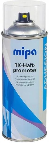 Mipa 1K Haftpromoter Spray 400 ml Podkład Przyczepnościowy Mipa 1K Haftpromoter to podkład przyczepnościowy spray całkowicie bezbarwny do uniwersalnego zastosowania na rożnych podłożach. Dzięki specjalnej formule bez problemu osiąga się przyczepność nawet na trudnych podłożach bez wcześniejszego szlifowania Materiał ten oferuje dużą oszczędność czasu dzięki szybkiemu schnięciu Możliwości szybkiego polakierowania Eliminacji szlifowania Wysokoelastyczny Nadaje się do lakierowania lakierami nawierzchniowymi 1K i 2K. Mipa 1K Haftpromoter jest bezbarwny i odporny na promieniowanie UV i dlatego może być lakierowany również lakierami bezbarwnymi Podkład przyczepnościowy ma zastosowanie do następujących podłoży stal aluminium (również polerowane lub anodowane) stal ocynkowana stal nierdzewna (również polerowana) metale kolorowe (również polerowane) farby proszkowe farby KTL tworzywa sztuczne powszechnie stosowane w przemyśle motoryzacyjnym Bezbarwne lakierowanie wrażliwych na rozcieńczalniki tworzyw sztucznych, zwłaszcza podłoży PC, może prowadzić do zmętnienia lub reakcji z tworzywem. Może to skutkować ograniczoną przejrzystością. Z tego powodu zaleca się, aby na krytycznych tworzywach sztucznych wykonać odpowiednie lakierowanie testowe. Czas schnięcia Pyłosuchy po ok 5 - 10 minutach Gotowy do polakierowania po ok 10 minutach