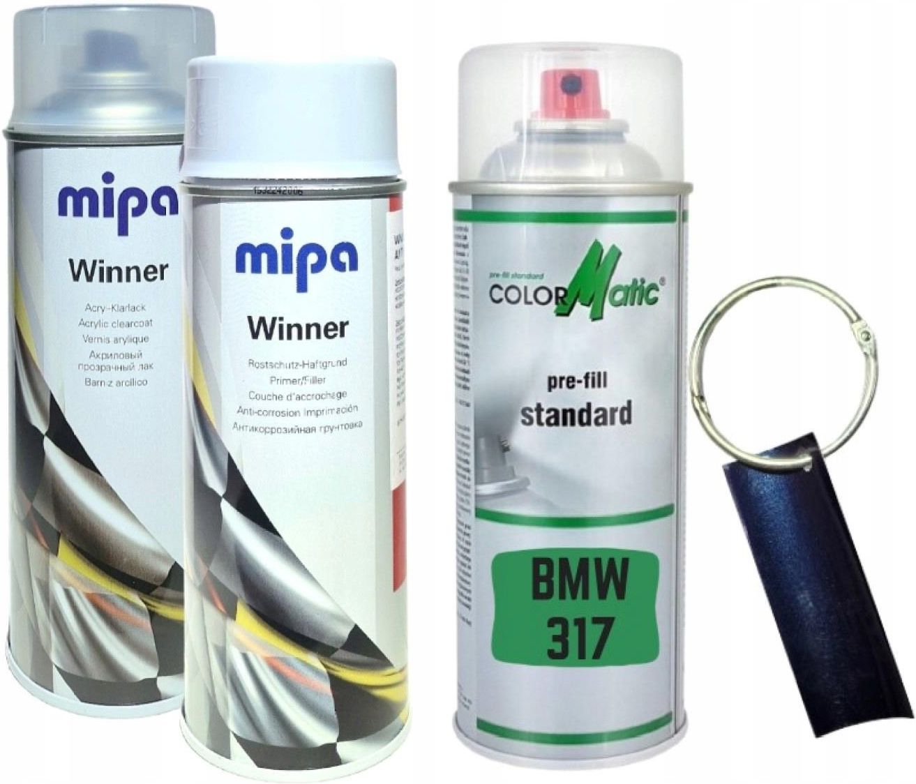 ZESTAW LAKIER SAMOCHODOWY SPRAY BMW 317 W skład prezentowanego zestawu wchodzi: Lakier samochodowy : BMW 317 - SPRAY 375ml Lakier bezbarwny : MIPA - SPRAY 400ml Podkład akrylowy : MIPA - SPRAY 400ml LAKIER SAMOCHODOWY SPRAY BMW 317 Spray doskonale sprawdza się do malowania niewielkich elementów …