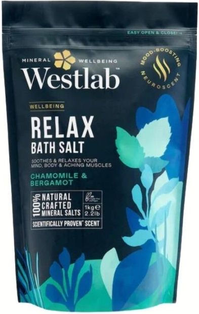 Relax relaksująca sól do kąpieli 1 kg Popraw swoje samopoczucie dzięki solom kąpielowym Westlab Relax. Sole bogate w magnez wzbogacone neurozapachami poprawiającymi nastrój, których działanie zostało naukowo udowodnione i wspomaga relaks. Popraw swoje samopoczucie dzięki soli do kąpieli Westlab Relax. Wzbogacona o poprawiający nastrój rumianek i bergamotkę oraz magnez, których działanie, jak udowodniono naukowo, pomaga w regeneracji umysłu i odnalezieniu wewnętrznego spokoju. Ukoi napięte, obolałe mięśnie i pomoże pozbyć się stresu i napięcia. Sposób użycia Do kąpieli Jak przygotować idealną kąpiel Wellbeing: Dodaj 1-2 filiżanki do ciepłej kąpieli i przyciemnij światło, aby stworzyć kojącą, przytulną atmosferę. Zanurz się w pachnącej wodzie mineralnej na co najmniej 20 minut, wykonując rytuał wellness, który dla Ciebie jest najważniejszy. Moczenie stóp Rozpuść do 1 szklanki (250 g) soli w ciepłej, 5-litrowej kąpieli stóp o temperaturze około 37-39°C. Zrelaksuj się i mocz stopy do 20 minut, w razie potrzeby odświeżając je dodatkową ciepłą wodą. Składniki 100% NATURALNE SKŁADNIKI: Chlorek magnezu, chlorek sodu (biała sól himalajska), Maris Sal (sól z Morza Martwego), Maris Sal (sól morska), Parfum*, Linalool**.*Wyprodukowano ze 100% naturalnych, organicznych olejków eterycznych, w tym z drzewa cedrowego. **Naturalnie występujący w olejkach eterycznych