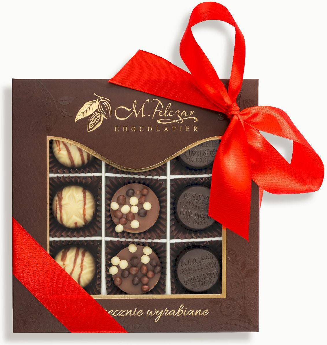 Zestaw pralin - orzech włoski, arachidowy, pistacja - 9 szt. Majstersztyk sztuki cukiernictwa ✔️ Od Mistrza Polski Cukierników - Mirosława Pelczara ✔️ Rzemieślnicze wykonanie Rozpływająca się w ustach rozkosz, którą oferuje ten ręcznie wytwarzany w M.Pelczar Chocolatier delikates, jest prawdziwym …