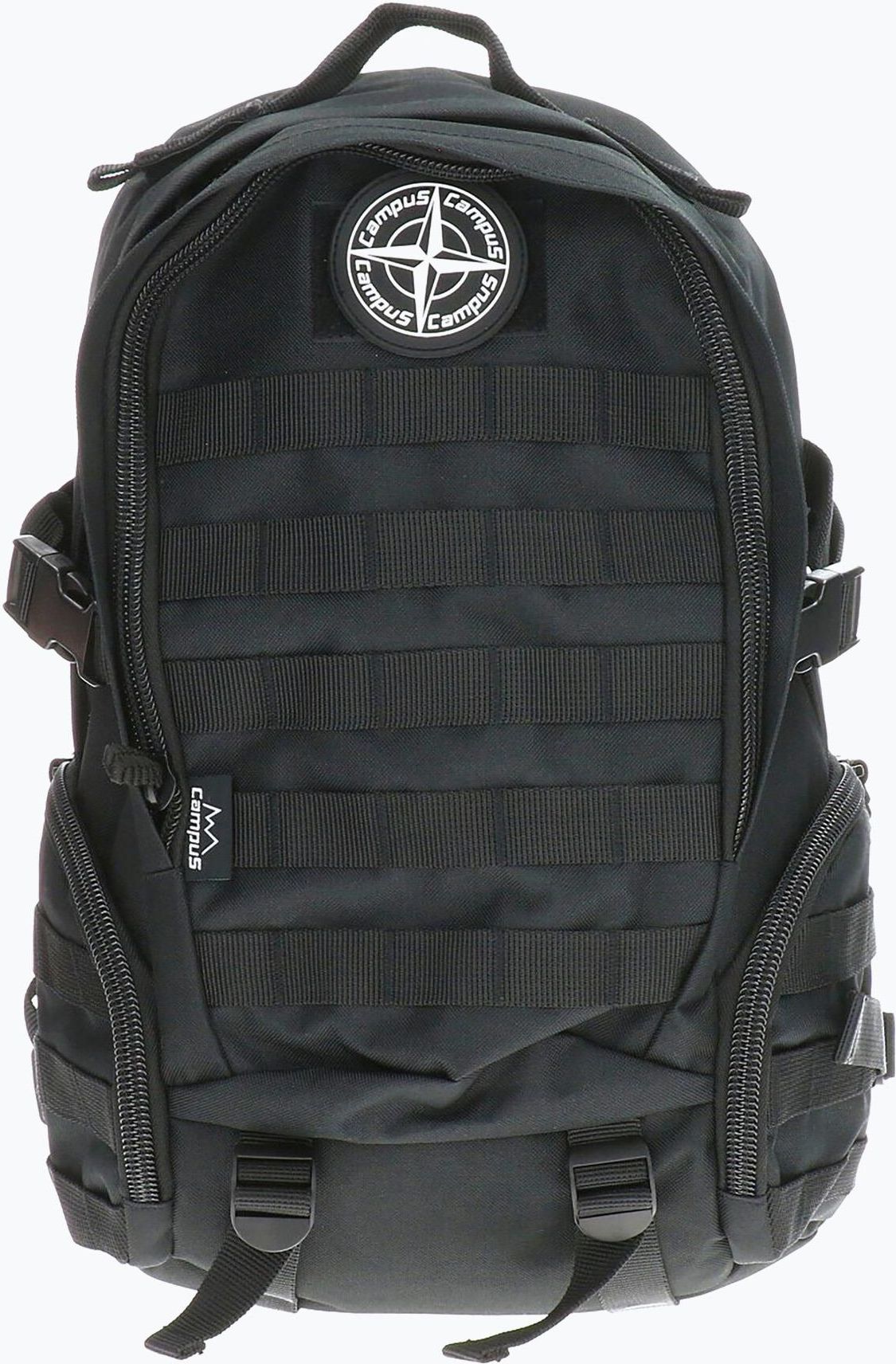 Plecak turystyczny Campus TORRENS 30 L Plecak militarny Campus TORRENS o pojemności 30 litrów to niezawodny model, który sprawdzi się zarówno podczas jednodniowych wypadów, jak i dłuższych wypraw w teren. Dzięki przemyślanej konstrukcji i wytrzymałym materiałom, stanowi idealne wyposażenie dla osób aktywnych, ceniących funkcjonalność, porządek oraz wygodę użytkowania w każdych warunkach. Model TORRENS został wyposażony w pojemną komorę główną oraz dodatkową komorę mniejszą, obie zamykane na zamek błyskawiczny. Dwie zewnętrzne kieszenie umożliwiają szybki dostęp do podręcznych przedmiotów. Pasy kompresyjne pozwalają na optymalne dopasowanie objętości plecaka do jego zawartości, a wentylowany panel tylny zwiększa komfort użytkowania podczas długich wędrówek. Całość wykonano z odpornego na przetarcia i intensywne użytkowanie poliestru. Dodatkowy otwór na wężyk systemu nawadniającego lub słuchawki zwiększa funkcjonalność w terenie, a panel z rzepem umożliwia personalizację plecaka za pomocą naszywek lub przypinek. Campus TORRENS to plecak, który poradzi sobie w każdej sytuacji – od miejskiego trekkingu po zaawansowane trasy outdoorowe. Dodatkowe kieszonki na zamek ułatwiają organizację i szybki dostęp do drobiazgów. Materiał główny: 100% poliester. Rzep na przypinki oraz otwór na wężyk/słuchawki zwiększają funkcjonalność w terenie. Pasy kompresyjne pozwalają dopasować objętość plecaka do zawartości. Poliester to jeden z najpopularniejszych materiałów na świecie. Główne zalety poliestru to wysoka sprężystość (tkaniny poliestrowe nie wymagają prasowania), duża wytrzymałość, szybkość schnięcia oraz lekkość.