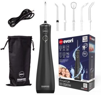Irygator bezprzewodowy ELDOM RY200C Evori skutecznie usuwa płytkę nazębną i poprawia stan dziąseł dzięki ciśnieniu 100–160 PSI i ponad 1500 pulsacjom na minutę. Posiada 4 tryby pracy, zbiornik 230 ml i czas pracy do 60 minut na jednym ładowaniu. Urządzenie jest wodoodporne (IPX7) i wyposażone w 5 końcówek oraz etui podróżne.