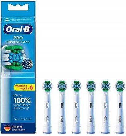 Oral-B Pro Precision Clean 6szt. White EB20RX Końcówka wymienna Precision Clean, przeznaczona do szczoteczek elektrycznych Oral-B, usuwa więcej płytki nazębnej niż zwykła szczoteczka manualna. Precision Clean dostosowuje się do kształtu każdego zęba i dociera do trudno dostępnych miejsc, dbając o czystość jamy ustnej i zdrowie dziąseł. Nic więc dziwnego, że jest to najlepiej sprzedająca się końcówka do szczoteczek Oral-B. Końcówka Precision Clean pasuje do wszystkich oscylacyjnych/rotacyjnych szczoteczek elektrycznych Oral-B, z wyjątkiem Pulsonic. Odkryj, czym różni się Oral-B od innych szczoteczek Odkryj nową generację innowacyjnych produktów do higieny jamy ustnej opracowanych przez Oral-B, światowego lidera w branży szczoteczek do zębów. Każda szczoteczka elektryczna Oral-B czyści zęby skuteczniej niż zwykła szczoteczka manualna. Znajdź swoją idealną szczoteczkę elektryczną Oral-B – marki najczęściej używanej i polecanej przez dentystów na całym świecie. Dokładnie czyści przestrzenie międzyzębowe Kształt końcówki pozwala włóknom dokładnie objąć każdy ząb i zapewnia indywidualnie dostosowany sposób mycia. Usuwa do 100% więcej płytki nazębnej niż zwykła szczoteczka manualna. Włókna końcówki Precision Clean sięgają głęboko między zęby i obejmują większą powierzchnię, zapewniając znacznie dokładniejsze czyszczenie niż w przypadku użycia zwykłej szczoteczki manualnej. Skuteczność działania jest dodatkowo zwiększona dzięki zastosowanej w szczoteczkach elektrycznych Oral-B technologii czyszczenia 3D, która działa z precyzją niemal 48 000 ruchów na minutę. Kształt inspirowany profesjonalnym sprzętem dentystycznym Włókna końcówki Precision Clean sięgają głęboko między zęby i obejmują większą powierzchnię, zapewniając znacznie dokładniejsze czyszczenie niż w przypadku użycia zwykłej szczoteczki manualnej. Skuteczność działania jest dodatkowo zwiększona dzięki zastosowanej w szczoteczkach elektrycznych Oral-B technologii czyszczenia 3D, która działa z precyzją niemal 48 000 ruchów na minutę. W porównaniu do 600 ruchów, jakie przeciętnie wykonujemy podczas mycia zębów szczoteczką manualną, zapewnia to nawet do 100% większą skuteczność w usuwaniu płytki nazębnej Regularnie wymieniaj końcówkę Dentyści zalecają wymianę końcówki szczoteczki co 3-4 miesiące. Wymienne końcówki szczoteczek Oral-B wyposażono w specjalne włókna sygnalizujące, kiedy należy wymienić końcówkę, aby zachować najwyższą skuteczność czyszczenia, w porównaniu ze szczoteczką manualną Wypróbuj 6 idealnych rozwiązań z tylko 1 szczoteczką Aby spełnić Twoje indywidualne potrzeby w zakresie pielęgnacji jamy ustnej, Oral-B oferuje szeroki wybór końcówek wymiennych do szczoteczek elektrycznych. Końcówki Oral-B pasują do wszystkich szczoteczek Oral-B, z wyjątkiem Pulsonic   Najczęściej zadawane pytania: Jak często należy wymieniać końcówkę szczoteczki? Dentyści zalecają wymianę końcówki szczoteczki co 3-4 miesiące lub częściej, kiedy włókna zużyją się lub stracą swój pierwotny kształt. Zużyte włókna tracą swoje właściwości, przez co zmniejsza się skuteczność czyszczenia Jaka jest różnica między modelem CrossAction i innymi końcówkami szczoteczek elektrycznych Oral-B? Każda końcówka szczoteczki Oral-B ma nieco inne właściwości i służy nieco innemu rodzajowi czyszczenia. Model CrossAction wyposażono w włókna ustawione pod kątem, które wyjątkowo skutecznie odrywają i usuwają płytkę nazębną oraz zapewniają znacznie lepsze efekty czyszczenia niż zwykła szczoteczka manualna. Końcówka Precision Clean pozwala uzyskać najwyższą precyzję czyszczenia i zwiększoną skuteczność w usuwaniu płytki nazębnej z linii dziąseł. Ten model działa też skuteczniej niż szczoteczka manualna. Włókna TriZone sięgają głęboko między zęby, skutecznie usuwają płytkę nazębną i umożliwiają mycie zębów w taki sposób, jak przy użyciu tradycyjnej szczoteczki manualnej. Końcówka Floss Action wyposażona jest w włókna MicroPulse, które sięgają głęboko między zęby, usuwając płytkę nazębną i zapewniając podobne efekty jak w przypadku stosowania nici dentystycznej (ale jej nie zastępują). Model 3D White wyposażono w nasadkę polerującą, która pomaga usuwać przebarwienia powierzchniowe. Końcówka Sensitive zapewnia delikatne, a jednocześnie bardzo skuteczne czyszczenie Do których szczoteczek pasuje końcówka Oral-B Precision Clean? Końcówka Precision Clean pasuje do wszystkich szczoteczek elektrycznych Oral-B, z wyjątkiem Oral-B Sonic. Można jej używać do następujących modeli szczoteczek: Oral-B Triumph, Oral-B SmartSeries, Oral-B PRO, Oral-B Vitality (z wyjątkiem Vitality Sonic) oraz Oral-B Pro-Health Power.