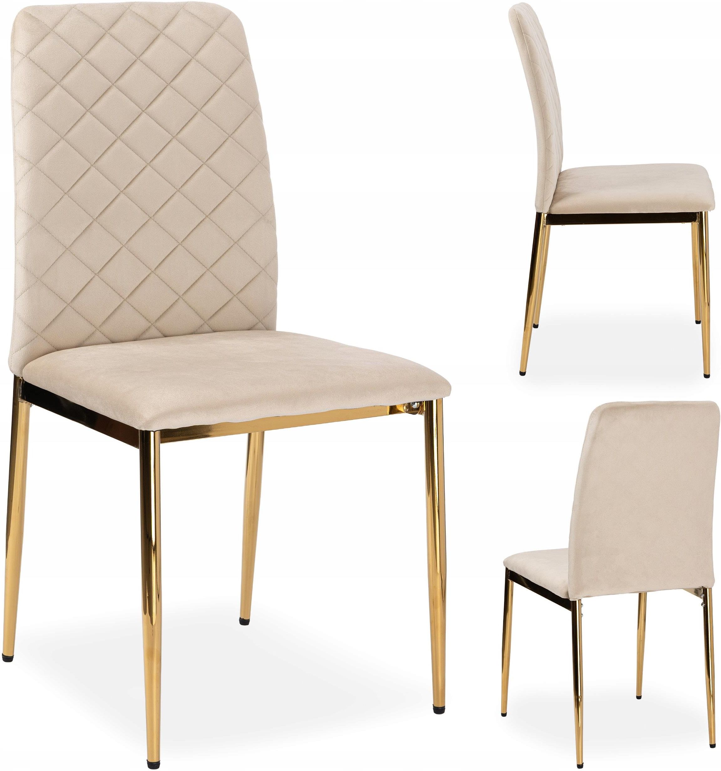Ehokery Krzesło Tapicerowane Beżowe Welur Nowoczesne Do Salonu Jadalni Złote Nogi (069860MG) Górzno