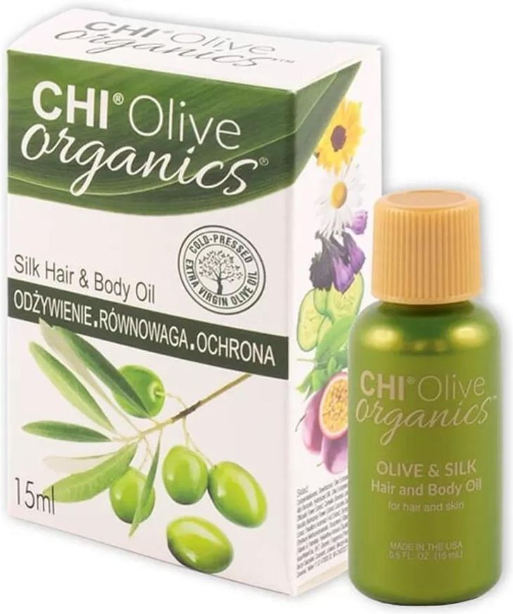 OLIWKA DO WŁOSÓW I CIAŁA Z OLIWĄ Z OLIWEK I JEDWAB Chi Olive Organics to profesjonalna seria kosmetyków stworzona z myślą o włosach oraz skórze z tendencją do wysuszania. Seria Olive Organics oparta jest na oliwie z oliwek oraz jedwabiu gwarantuje intensywne nawilżenie. Silnie nawilżająca oliwka chroniąca włosy i ciało przed utratą wilgoci. Zawiera certyfikowaną oliwę z oliwek oraz cząsteczki jedwabiu zapewniające zrównoważoną pielęgnację włosów i skóry całego ciała. Dzięki zawartości składników aktywnych oliwka szybko się wchłania pozostawiając miękką, gładką oraz nawilżoną skórę. Produkt nie zawiera glutenu oraz parabenów. Ma piękny, przyjemny zapach róży oraz jest bardzo wydajna w stosowaniu. Sposób użycia: Wstrząśnij przed użyciem. Zaaplikuj niewielką ilość oliwki na dłonie, nałóż na suche lub wilgotne włosy od połowy aż po same końce. Na ciało nakładać na czystką, suchą skórę.