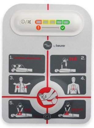 Beurer RH 112 LivePAD Beurer RH 112 LivePAD to innowacyjna nakładka wspomagająca przeprowadzenie resuscytacji w przypadku Nagłego Zatrzymania Krążenia. Dzięki niej uzyskujemy natychmiastową informację zwrotną dotyczącą wskazanej głębokości uciśnięć klatki piersiowej. Beurer RH 112 LivePAD LivePad® wspiera przeprowadzenie skutecznej resuscytacji krążeniowo-oddechowej (RKO) u osób w wieku powyżej 12 lat po nagłym zatrzymaniu krążenia (NZK). Akcja ratunkowa wspomagana jest za pomocą akustycznego i wizualnego systemu sprzężenia zwrotnego w celu oceny wykonanych uciśnięć. LivePad® należy użyć, gdy osoba udzielająca pierwszej pomocy stwierdzi, że u pacjenta doszło do zatrzymania akcji serca. DLA KAŻDEGO LifePad® jest przeznaczony do użytku przez osoby dorosłe i młodzież w wieku powyżej 12 lat. Nakładka została zaprojektowana w intuicyjny sposób, tak aby z łatwością mogła być wykorzystana przez osoby bez przygotowania medycznego. KORZYŚCI KLINICZNE LifePad® ma na celu nie tylko motywowanie większej liczby ludzi do udzielania pierwszej pomocy, ale także wspieranie mało doświadczonych osób w prowadzeniu resuscytacji krążeniowo-oddechowej. Nakładka przekazuje nam na bieżąco informację zwrotną o głębokości uciśnięć klatki piersiowej, co przekłada się na uratowanie życia. BEZPIECZEŃSTWO I OCHRONA Złamania żeber, otarcia skóry, siniaki, rany na klatce piersiowej oraz inne urazy są powszechnymi konsekwencjami resuscytacji. Mimo tego nie należy przerywać wykonywania uciśnięć, aż do przybycia profesjonalnej pomocy medycznej. Masaż serca z LivePad jest zdecydowanie bardziej skuteczny, kiedy poszkodowany ułożony jest na płaskim i twardym podłożu. Jeśli LivePad® jest używany w połączeniu z urządzeniem AED, należy postępować zgodnie z instrukcjami bezpieczeństwa defibrylatora. LivePad® jest przeznaczony wyłącznie do jednorazowego użytku i w żadnych okolicznościach nie może być używany wielokrotnie. Dane techniczne: Typ: RH 112 Wymiary: 210 x 160 x 3 mm (podkładka) / 15mm (obudowa) Waga: Około. 130 g Klasa ochrony: IP44 Oczekiwany okres użytkowania: Produkt jednorazowego użytku
