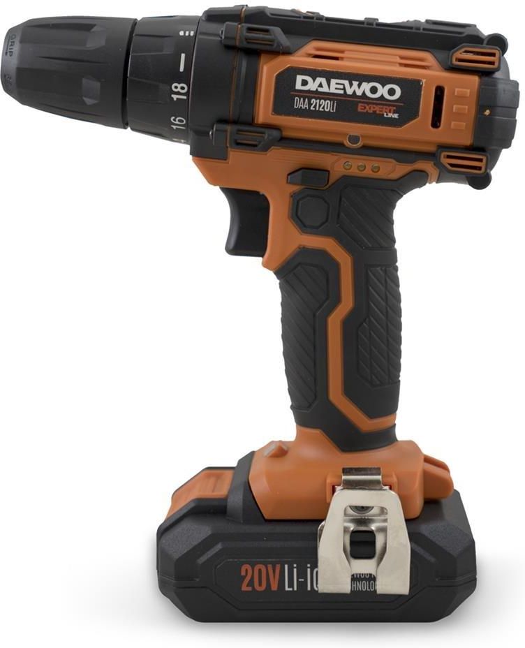 Wiertarko-wkrętarka akumulatorowa marki DAEWOO do prac remontowych w domu, ogrodzie lub na budowie. Wyposażona w szybkozaciskowy uchwyt wiertarski oraz lampkę LED. W zestawie z dwiema bateriami o pojemności 1,5 Ah oraz walizką.