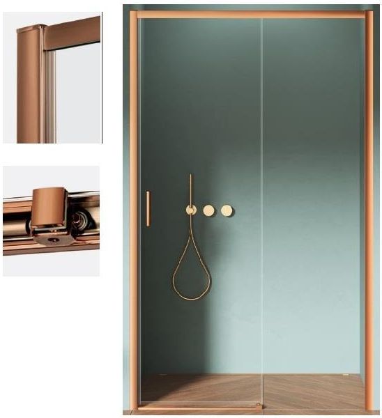 NEW TRENDY Drzwi prysznicowe rozsuwane PRIME COPPER BRUSHED 120 PRAWE Wymiary rzeczywiste mierzone do zewnętrznej krawędzi profilu Zakres wnęki A 117,7-121,7 cm Wymiar B 54 cm Wymiar W 50 cm Wymiar H 200 cm Wykończenie profili kolor miedziany szczotkowany Cechy produktu: Szkło czyste hartowane, …