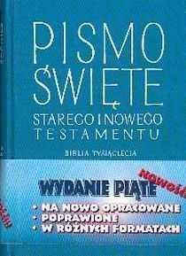 Biblia Tysiąclecia to najpopularniejsze narodowe wydanie Pisma Świętego. Zawiera jedyny polski tekst Pisma Świętego, zatwierdzony do stosowania w liturgii przez Konferencję Episkopatu Polski, przystępne komentarze - przypisy, mapy oraz podręczny słownik biblijny. Biblia - "Księga Życia" - Verba Sacra – jest bez wątpienia najwspanialszym z dzieł w historii świata, bestsellerem wszechczasów. Polskie tłumaczenie z języków oryginalnych, znane pod historycznym już tytułem Biblia Tysiąclecia jest szczególnym znakiem obecności Boga i Jego Objawienia w najnowszej historii naszego narodu. Zachęcamy do ożywienia i umocnienia osobistego kontaktu z Bogiem, zapraszając do sięgnięcia po nowe, piąte wydanie Biblii Tysiąclecia. Idea ta wychodzi naprzeciw wezwaniu Kościoła zarówno do jak najczęstszego kontaktu ze Słowem Bożym, jak i do radosnego dzielenia się Dobrą Nowiną ze wszystkimi. Jak napisał Ojciec Święty: "W ten sposób jeszcze większa rzesza ludzi będzie miała dostęp do Słowa Bożego, które jest «mocą Bożą ku zbawieniu dla każdego wierzącego» (Rz 1,16)." Biblia stanowi konstytutywną i egzystencjalną podstawę misyjnego posłannictwa Kościoła od początku jego istnienia. Jest stale obecna w liturgii, katechezie i ewangelizacji. Sobór Watykański II (1963-1965) proponując odnowę Kościoła akcentuje potrzebę wzięcia do ręki przez wszystkich wierzących - duchownych i świeckich - Pisma świętego. W konstytucji soborowej o Objawieniu Bożym w nr 21-25 czytamy: "Kościół miał zawsze we czci Pisma Boże, podobnie jak samo Ciało Pańskie... Wierni winni mieć szeroki dostęp do Pisma świętego... sobór prosi wszystkich wiernych, by przez częste czytanie Pisma świętego nabywali wzniosłego poznania Jezusa Chrystusa". Jan Paweł II przekazując w roku 1984 Biblię Tysiąclecia młodzieży akademickiej pisał: "Przekazując Młodzieży Akademickiej w Polsce Biblię Tysiąclecia życzę, aby odnajdywała w niej Chrystusa, który jest Prawdą, Drogą i Życiem", a obecnie przygotowując Kościół na Jubileusz 2000 roku w liście apostolskim Tertio millennio adveniente (40) pisze: "Aby poznać prawdziwą tożsamość Chrystusa, chrześcijanie powinni powrócić z odnowionym zapałem do Biblii". O. Augustyn Jankowski OSB - w imieniu Redakcji Naukowej - napisał o piątym wydaniu Biblii Tysiąclecia: "Już ponad 40 lat minęło od ukazania się Biblii Tysiąclecia. Kolejne jej wydania, zwłaszcza Nowego Testamentu, zaznaczały się stale rosnącą liczbą zmian ulepszających bądź wierność przekładu, bądź wstępy do ksiąg i przypisy. W tym okresie ukazywało się w prasie sporo recenzji BT, mniej lub bardziej krytycznych, a do Redakcji Naukowej napływało wiele listów z uwagami lub propozycjami zmian. Z drugiej strony minione lata zaznaczyły się postępem w takich dyscyplinach pomocniczych dla biblistyki, jak: archeologia, historia, krytyka tekstu i filologia biblijna, nie mówiąc już o postępie w zakresie egzegezy. Nadto pojawiły się w tym czasie nowe dokumenty Urzędu Nauczycielskiego Kościoła dotyczące tej dziedziny. Wreszcie ukazało się wiele zupełnie nowych przekładów Biblii na języki współczesne. Wszystko to skłoniło Redakcję Naukową, w porozumieniu z Wydawnictwem Pallottinum, do podjęcia gruntownej rewizji tekstu BT pod każdym względem, w duchu zapoczątkowanego przez II Sobór Watykański dzieła aggiornamento. Na spotkaniach obu zespołów zwiększono w tym celu osoby skład Redakcji Naukowej oraz ustalono wytyczne podjętej rewizji. Niniejsze, piąte, wydanie zawiera następujące zmiany: 1) Wstępy do działów i do poszczególnych ksiąg oraz przypisy unowocześniono odpowiednio do osiągnięć naukowych ostatniego trzydziestolecia i do potrzeb czytelników szukających miejsc równoległych w Biblii; 2) Dokonano zmian merytorycznych samego przekładu w imię większej jego zgodności z tekstem oryginalnym, zwłaszcza hebrajskim w Starym Testamencie, odstępując od zbyt częstego poprawiania go według tekstu Septuaginty, której odmienne lekcje podano w przypisach; 3) Poprawiony i ujednolicony został język i styl przekładu, na szczególną wdzięczność zasługuje tu pani prof. Anna Świderkówna w zakresie konsultacji oraz panie redaktorki Janina Dembska, Maria Nowaczyńska i Maria Przybył. Niech to nowe, gruntownie zmienione wydanie piąte Biblii Tysiąclecia jeszcze lepiej niż poprzednie służy polskiemu czytelnikowi, który pragnie głębiej wnikać w zapisane Słowo Boże."