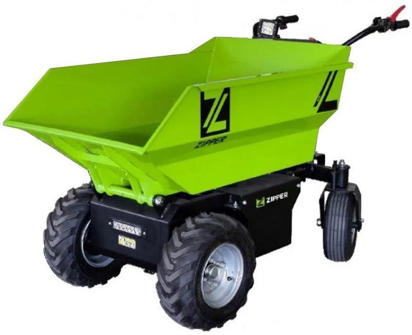 Elektryczne wozidło, wywrotka Zipper ZI-ED500 Elektryczne wozidło Zipper ZI-ED500 – niezawodność i ekologia w jednym Elektryczne wozidło, wywrotka Zipper ZI-ED500 to innowacyjne urządzenie, które łączy funkcjonalność, wydajność i ekologię. Zostało stworzone z myślą o użytkownikach, którzy potrzebują skutecznego narzędzia do transportu ciężkich ładunków w różnych warunkach terenowych. Dzięki napędowi elektrycznemu ZI-ED500 zapewnia cichą, bezemisyjną pracę, co czyni go idealnym wyborem zarówno na placu budowy, jak i w ogrodzie czy gospodarstwie. Cechy produktu: Mocny silnik: Silnik o mocy 1000 W, zasilany akumulatorem 48 V, zapewnia długą, stabilną i bezproblemową pracę, nawet pod dużym obciążeniem. Hydrauliczny system przechyłu: HPU o mocy 800 W umożliwia łatwe przechylanie ładunku, dzięki czemu załadunek i rozładunek są szybkie i wygodne. Imponująca ładowność: Pojemność skrzyni 236 litrów i możliwość transportu ładunków do 500 kg sprawiają, że ZI-ED500 jest niezastąpiony w przenoszeniu ciężkich materiałów, takich jak gruz, ziemia czy narzędzia. Mobilność i wygoda: Wyposażony w elektromagnetyczny hamulec, który zwiększa bezpieczeństwo pracy. Możliwość poruszania się do przodu i do tyłu z regulowaną prędkością: Prędkość do przodu: 0–5 km/h/Prędkość do tyłu: 0–1,5 km/h Długa praca na baterii: Akumulator o pojemności 32 Ah zapewnia do 8 godzin ciągłej pracy na jednym ładowaniu, co pozwala na efektywne wykonanie zadań w ciągu dnia. Zastosowanie: Transport materiałów budowlanych, ziemi, gruzu czy narzędzi. Prace w ogrodach, sadach i na terenach zielonych. Zastosowania w gospodarstwach rolnych i magazynach. Dane techniczne: Moc silnika: 1000 W Napięcie: 48 V Maks. obciążenie: 500 kg Ładowność (równe podłoże): 236 l Wymiary skrzyni: 1090 x 66,5 x 385 mm System przechyłu: HPU (jednostka hydrauliczna) 800 W Rekomendowany olej hydrauliczny: HLP 46 Ilość oleju hydraulicznego: 4 l Hamulce: hamulec elektromagnetyczny Prędkość do przodu: I: 0-3,3 km/h; O: 0-4,2 km/h; II: 0-5 km/h Prędkość do tyłu: 0-1,5 km/h Maks. kąt natarcia: 20° Wymiary koła – przód: 16×6,5-8 Wymiary koła – tył: 13×5,00-6 Koła: bezdętkowe Światła: 2 x 30 W Wymiary maszyny: 1760 x 730 x 1020 (1490) mm Waga netto/brutto: 208 / 241,5 kg Akumulator: : Rodzaj: 48 V / 32 Ah (Pb) Czas ładowania: ~6-7 godz. Prąd ładowania: 4,5 A Czas pracy na baterii: maks. 8 godz Ładowarka: : Rodzaj: ładowarka