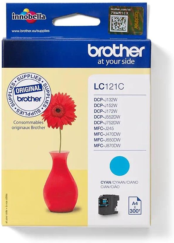 Brother LC-121C Wydajność druku do 300 stron zgodnie z normą ISO/IEC 24711 Wysokiej jakości, oryginalny tusz firmy Brother Oszczędność papieru, czasu i pieniędzy Opis produktu  Brother LC-121C Oryginalny tusz firmy Brother w kolorze cyan LC-121C został opracowany w celu zapewnienia najwyższej jakości każdego wydruków. Kartridż wymienia się bardzo łatwo i gwarantuje on pełną kompatybilność z urządzeniami firmy Brother. Kompatybilne z Brother DCP-J132W, DCP-J152W, DCP-J552DW, MFC-J470DW. Więcej informacji o produkcie Brother LC-121C Przy zamawianiu tuszu do drukarki atramentowej warto polegać na kartridżu LC-121C firmy Brother w celu utrzymania jak najlepszego stanu urządzenia i zapewnienia najwyższej jakości druku. Wymiana tuszu na tańszy zamiennik może wydawać się atrakcyjną decyzją. Należy jednak pamiętać, że może on nie tylko negatywnie wpłynąć na jakość druku, ale doprowadzić również do długotrwałych uszkodzeń drukarki. Oryginalny tusz LC-121C w kolorze cyan zapewnia poprawne funkcjonowanie urządzenia a w długiej perspektywie gwarantuje lepszy stosunek jakości do ceny. LC-121C to świetne rozwiązanie do domu czy małego biura szukającego oszczędności przy zapewnieniu wysokiej jakości wydruków.