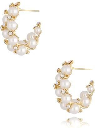 Kolczyki z kolekcji Pearls Sea wykonane z wysokiej jakości złotego mosiądzu oraz cyrkonii i szklanych pereł w kolorze białym. Surowiec: mosiądz Kolor surowca: złoty Wymiary kolczyka: 2,65 cm x 2,17 cm Elementy: szklane elementy imitujące perły Cyrkonie: transparentne Rodzaj mocowania: sztyft