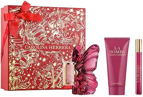 CAROLINA HERRERA La Bomba zestaw prezentowy dla Kobiet 100% oryginał , dystybucja Sirowa Polska Zestaw zawiera Carolina Herrera - La Bomba 50ml EDP Carolina Herrera- Balsam do Ciała 100 ml Carolina Herrera - Travel Spray La Bomba 10ml EDP Produkt jest w oryginalnym opakowaniu, świeży, nowy. Rozwiń skrzydła z zapachem, który celebruje wolność i kobiecość Woda perfumowana Carolina Herrera La Bomba reprezentuje pasję, radość i nieokiełznanego kobiecego ducha. Jej kwiatowa kompozycja zachęca do swobodnego, pełnego i autentycznego życia. Każda kobieta może być jak La Bomba dzięki radosnemu połączeniu egzotycznej pitai, bogatej wiśniowej piwonii i słonecznej wanilii. La Bomba to eksplozja kobiecej energii, radości i zmysłowości. Zapach stworzony dla kobiet, które żyją głośno, odważnie i bez kompromisów. To manifest wolności, autentyczności i stylu, który nie podąża za trendami — on je wyznacza. Nuty zapachowe Nuty głowy: pitaja (smoczy owoc) Nuty serca: cherry peony, frangipani Nuty bazy: solarna wanilia Cechy produktu Rodzaj: woda perfumowana dla kobiet Kompozycja zapachu: kwiatowo-owocowa z tropikalnym akcentem