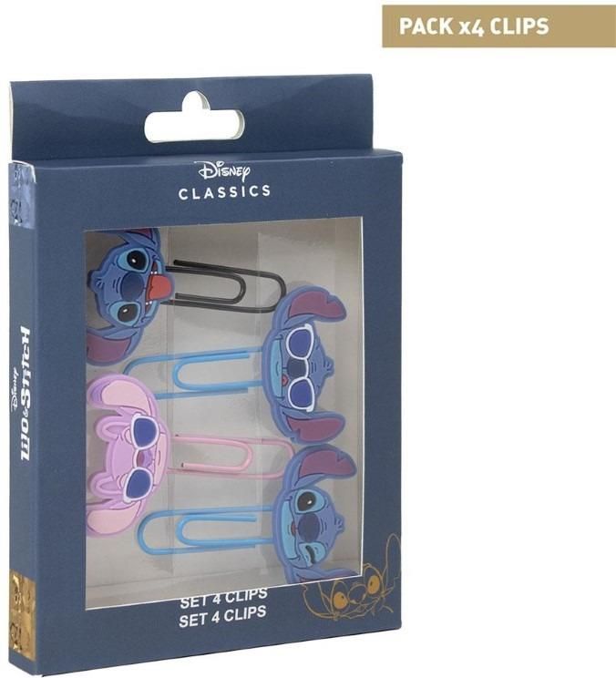 Zestaw 4 sztuk licencjonowanych spinaczy Stitch Spinacze posiadają na końcach postacie z bajki Lilo Stitch 2 sztuki są niebieskie, 1 sztuka różowa, 1sztuka czarna