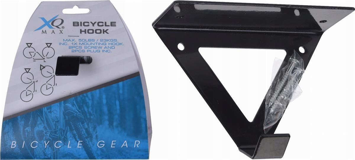 Hak rowerowy XQ Max czarny Hak do zawieszenia roweru XQ Max z łatwością zawieś swój rower za pomocą tego haka XQ Max.Przymocuj hak do sufitu za pomocą dostarczonych śrub i kołków. Przednie koło należy zawiesić na haku. Specyfikacja techniczna: Kolor: czarny Materiał: stal Wymiary: 16,5 x 7 x 17,5 cm (dł. X szer. X wys.) Waga haka: 0,362 g Ten hak sufitowy jest odpowiedni dla wszystkich rowerów o masie do 23 kg
