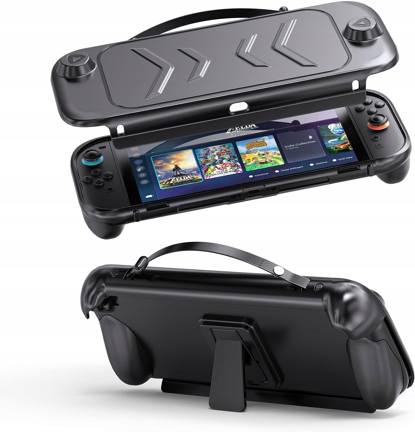 Dedykowana | Dopasowana Osłona na tył i na przód konsoli Dedykowana do Nintendo Switch 2 Kompatybilność: Konsola Nintendo Switch 2 Zestaw 2-częściowy - etui chroni zarówno front, jak i tył konsoli, dbając o pełne bezpieczeństwo Twojego sprzętu z każdej strony Wbudowana nóżka (stand) - idealna do oglądania, grania i korzystania z ekranu w trybie tabletu Uchwyt - rączka do przenoszenia - komfortowy transport konsoli bez potrzeby dodatkowego pokrowca Wyprofilowane uchwyty - zapewniają lepszy chwyt podczas dłuższych sesji gamingowych Precyzyjne wycięcia - pełen dostęp do wszystkich portów, przycisków i slotów Łatwa instalacja - szybki montaż i demontaż bez narzędzi Produkt firmy JYS Model: JYS-NS2272-V2 Kolor: Czarny Etui składa się z dwóch idealnie dopasowanych elementów tylnej osłony z podstawką przedniej zdejmowanej pokrywy ochronnej Razem tworzą funkcjonalną i wytrzymałą ochronę Twojej konsoli - zarówno w domu, jak i w podróży. Każda z osłon może być stosowana również osobno. Osłona tylna - ergonomiczna i praktyczna Tylna osłona została zaprojektowana z myślą o ochronie całej tylnej części konsoli przed zarysowaniami, zabrudzeniami i urazami mechanicznymi. Cechy tylnej osłony: Ergonomiczny kształt - poprawia komfort trzymania konsoli Antypoślizgowe właściwości - zapobiega wyślizgnięciu się konsoli z rąk, nawet gdy dłonie są wilgotne Wbudowana nóżka (stand) - składana i chowana podstawka pozwala ustawić konsolę pod kątem ok. 80° Idealna do grania w trybie stołowym - wygoda w każdej sytuacji Osłona przednia - zdejmowana pokrywa ochronna Druga część etui to sztywna, solidna pokrywa ochronna, która zabezpiecza ekran i przednią część konsoli przed uszkodzeniami i zabrudzeniami. Wykonana z wytrzymałego materiału ABS, świetnie chroni urządzenie w torbie, plecaku czy podczas transportu. Cechy przedniej pokrywy: Wysoka odporność na uderzenia, zarysowania i kurz Sztywna konstrukcja - chroni ekran przed naciskiem i uszkodzeniami Wygodna rączka do trzymania - ułatwia bezpieczne przenoszenie konsoli w dłoni Łatwe zdejmowanie i zakładanie Idealnie przylega, nie przesuwa się podczas przenoszenia Informacje praktyczne Wymiary futerału: 29.5 x 13 x 5 cm Materiał wykonania: TPU i ABS Waga: 235g. W zestawie 1x futerał elastyczny - tylny, z rozkładaną podpórką 1x futerał sztywny - przedni z rączką