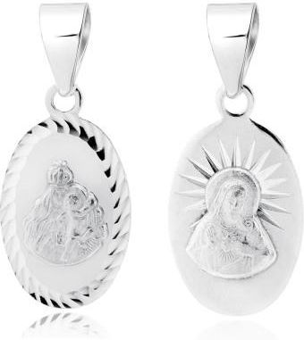 Zawieszka wykonana z wysokiej jakości srebra próby 925. Model stanowi srebrny diamentowany dwustronny medalik z centralnie umiejscowionym wizerunkiem Matki Boskiej Szkaplerznej. Zawieszka cechuje się wyjątkową delikatnością oraz precyzją wykonania nawet w najmniejszym szczególe. Idealny zarówno do noszenia na co dzień, jak i jako prezent dla wyjątkowej osoby. Średnica zawieszki: 10mm x 22mm Kolor: Srebrny Materiał: Srebro próby 925 Waga: 1,5g