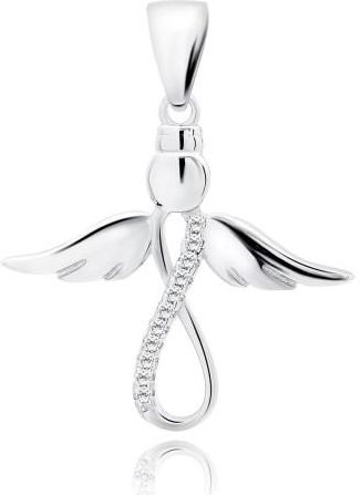 Zawieszka wykonana z wysokiej jakości srebra próby 925. Model ten ma kształt znaku nieskończoności z cyrkoniami i skrzydła anioła. Zawieszka cechuje się wyjątkową delikatnością oraz precyzją wykonania nawet w najmniejszym szczególe. Idealny zarówno do noszenia na co dzień, jak i jako prezent dla wyjątkowej osoby. Długość zawieszki: 25mm Szerokość zawieszki: 21mm Kolor: Srebrny Materiał: Srebro próby 925 Waga: 1,3g