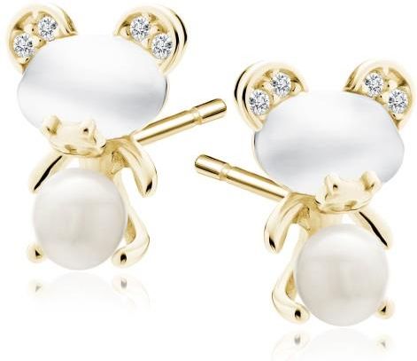 Kolczyki w kształcie misia z elementami pozłacanego srebra próby 925, przyozdobione białymi cyrkoniami i perłami. Kolczyki cechują się wyjątkową delikatnością oraz precyzją wykonania nawet w najmniejszym szczególe.Wymiary kolczyków: 8 x 10 mmKolor: BiałymMateriał: Srebro pozłacane próby 925, perła, cyrkoniaWaga: 1,2g