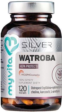 MyVita Silver Pro Complex Wąroba 120 kaps. Suplement diety MyVita Silver Pro Complex to doskonałe wsparcie dla zdrowia wątroby, kluczowego narządu w organizmie. Dzięki starannie dobranym składnikom, ten produkt pomaga w naturalnych procesach regeneracyjnych wątroby oraz chroni ją przed szkodliwym działaniem toksyn i metali ciężkich. Wybierając MyVita Silver Pro, inwestujesz w swoje zdrowie i dobre samopoczucie. Pojemność i forma podawania MyVita Silver Pro Complex dostępny jest w formie kapsułek, co czyni go wygodnym i łatwym w użyciu suplementem. Produkt zawiera 120 kapsułek, co pozwala na długotrwałe wsparcie dla Twojej wątroby. Aby uzyskać optymalne efekty, zaleca się przyjmowanie jednej kapsułki dziennie, popijając ją wodą w trakcie posiłku. To prosta aplikacja, która wkomponuje się w codzienną rutynę. Skład i składniki aktywne Skład suplementu jest starannie dobrany, aby dostarczyć wszystkich niezbędnych składników wspomagających zdrowie wątroby. W składzie znajdują się: Inulina z korzenia cykorii – 240 mg, Dwu-winian choliny – 100 mg, Ekstrakt z ostropestu plamistego (standaryzowany na 80% sylimaryny i 30% sylibiny) – 50 mg, w tym: Sylimaryna – 40 mg, Sylibina – 15 mg, Ekstrakt z liści karczocha (standaryzowany na 5% cynaryny) – 50 mg, w tym: Cynaryna – 2,5 mg, L-asparginian L-ornityny – 50 mg, Opatentowany Phosphocomplex (standaryzowany na 30% sylibiny) – 20 mg, w tym: Sylibina – 6 mg. Kapsułki nie zawierają sztucznych dodatków czy wypełniaczy, co czyni je bardzo czystym produktem, przyjaznym dla zdrowia. Działanie suplementu Dzięki wyjątkowej kompozycji składników, MyVita Silver Pro działa na kilku płaszczyznach, wspierając zdrową funkcję wątroby: Ochrona przed toksynami: Składniki aktywne wpływają na detoksykację organizmu, co jest kluczowe dla ochrony wątroby przed szkodliwymi substancjami. Regeneracja komórek wątrobowych: Sylimaryna i sylibina przyczyniają się do wspomagania procesów regeneracyjnych, co jest ważne w przypadku uszkodzeń spowodowanych toksynami. Wsparcie metabolizmu lipidów: Obecność choliny i cynaryny wspomaga metabolizm tłuszczów, co jest istotne dla utrzymania prawidłowej masy ciała i funkcji metabolicznych. Ogólna detoksykacja organizmu: Składniki aktywne wspierają również ogólną detoksykację organizmu, co ma pozytywny wpływ na samopoczucie. Wskazania do stosowania MyVita Silver Pro jest przeznaczony dla osób, które pragną zadbać o zdrową wątrobę. Wskazania do stosowania obejmują: Wsparcie w procesie detoksykacji organizmu, Potrzebę ochrony wątroby przed szkodliwymi substancjami, Wspomaganie naturalnych procesów regeneracyjnych wątroby, Odpowiedni dla osób prowadzących zdrowy tryb życia. Dawkowanie Zaleca się stosowanie jednej kapsułki dziennie. Ważne jest, aby nie przekraczać tej dawki. Kapsułkę należy popić wodą w trakcie posiłku, co ułatwi jej przyswajanie i działanie. Przeciwwskazania i bezpieczeństwo Chociaż suplement jest bezpieczny dla większości osób, istnieją pewne przeciwwskazania. Nie powinien być stosowany przez osoby z nadwrażliwością na jakikolwiek składnik preparatu. Dodatkowo, nie zaleca się go kobietom w ciąży, karmiącym piersią oraz dzieciom. Przed rozpoczęciem suplementacji zaleca się konsultację z lekarzem, szczególnie w przypadku osób z przewlekłymi schorzeniami. Informacje/cechy dodatkowe MyVita Silver Pro wyróżnia się nie tylko skutecznością działania, ale także wysoką jakością składników. Produkt jest wytwarzany w Polsce oraz jest wegański i wegetariański, co czyni go odpowiednim wyborem dla osób poszukujących naturalnych rozwiązań dla zdrowia swojej wątroby. Dodatkowo, nie zawiera sztucznych dodatków, parabenów czy sulfatów, co stanowi dodatkowy atut dla klientów dbających o jakość swoich suplementów. Wybierając ten produkt, inwestujesz w zdrowie i dobrostan swojego organizmu. Dbanie o wątrobę z MyVita Silver Pro to krok ku lepszemu samopoczuciu i witalności.