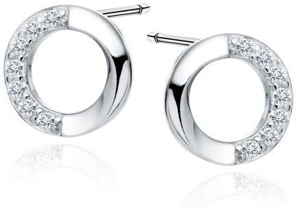Kolczyki wykonane ze srebra próby 925. Model ten stanowi ciekawy wzór wysadzanych jasnymi cyrkoniami kółeczek. Kolczyki są w całości w srebrno-białej kolorystyce i cechują się wyjątkową delikatnością oraz precyzją wykonania nawet w najmniejszym szczególe. Para kolczyków zapinania jest na wygodny sztyft. Średnica kolczyków: 8mm Kolor: Srebrny Materiał: Srebro próby 925 Waga: 1,2g Zapięcie: Sztyft