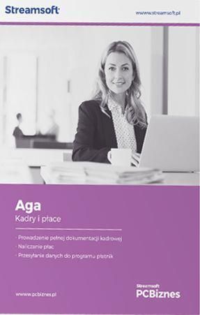Streamsoft AGA kadry i płacelicencja elektroniczna , 1 firma, 1 stanowisko, 10 pracownikówProgram kadrowo-płacowyAga - kadry i płaceProgram do obsługi kadrowo – płacowej dla firm: Prowadzenie pełnej dokumentacji kadrowej Naliczanie płac Przesyłanie danych do programu Płatnik Generowanie i wysyłka e-Deklaracji - dożywotnia licencja na Program- 12 miesięcy bezpłatnych aktualizacji- 12 miesięcy bezpłatnej pomocy telefonicznej oraz mailowej.- Po okresie 12 miesięcy abonament na aktualizacje i pomoc jest płatny zgodnie z aktualnymi warunkami licencji.KadryProgram kadrowy Aga umożliwia prowadzenie pełnej dokumentacji kadrowej w firmie, w tym wprowadzanie kompletnej historii zatrudnienia i rejestr wydruków.PłaceProgram płacowy Aga pozwala na automatyczne naliczanie płac na podstawie wprowadzonej umowy i ewidencji czasu pracy. Poza tym dostępne są wyliczanie wysokości stawek urlopowych, ekwiwalentów, zasiłków chorobowych, macierzyńskich itp.DeklaracjeSporządzanie, wydruk i wysyłka deklaracji do serwisu e-Deklaracje. Program kadrowo-płacowy Aga obsługuje wszystkie wymagane deklaracje, m.in.: PIT-11, PIT-4R, PIT-R, PIT-8AR i jest na bieżąco aktualizowany w najnowsze wersje formularzy deklaracji.Eksport do #8220;Płatnika#8221;Pogram kadrowo-płacowy Aga daje możliwość wygenerowania pliku XML z danymi rozliczeniowymi i zgłoszeniowymi do ZUS, które można zaimportować do systemu „Płatnik#8221;. Obsługiwane są wszystkie wymagane formularze ZUS, m.in. ZUS RCA, ZUS RSA, ZUS RZA, ZUS ZUA, ZUS ZZA.Przelewy do ZUSNaliczanie wysokości składek za Ubezpieczenie Społeczne, Ubezpieczenie Zdrowotne, Fundusz Pracy i Fundusz Gwarantowanych Świadczeń Pracowniczych, Fundusz Emerytur Pomostowych oraz generowanie danych do przelewu na odpowiednie konta ZUS to kolejne z możliwości programu kadrowego Aga.