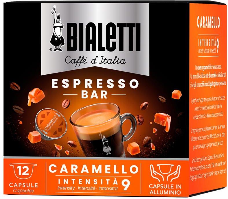 Bialetti - Caramello - 12 Kapsułek Prawdziwa włoska kawa w kapsułkach. Bialetti Caramello to włoska kawa o średnim profilu palenia, o intensywnych karmelowych nutach i delikatnych waniliowych. Ze względu na stopień palenia, kawa jest polecana szczególnie do espresso. Kapsułki są kompatybilne z …