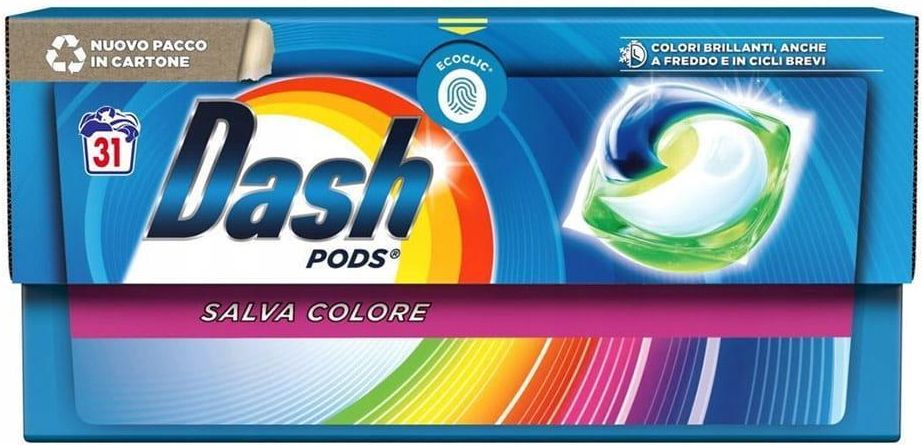 Kapsułki do prania Lavatrice Ecodosi 31pz. Colore - Dash Opakowanie 31 kapsułek do prania Lavatrice Ecodosi Colore, marki Dash, to doskonałe rozwiązanie dla wszystkich poszukujących wydajnego i skutecznego sposobu na czyste i pachnące ubrania. Zapomnij o problemach z dawkowaniem detergentu i beznadziejnych plamach – te kapsułki zrobią to za Ciebie! Dzięki technologii Ecodosi, kapsułki Dash Lavatrice są łatwe w użyciu i zapewniają doskonałe rezultaty prania. Wystarczy włożyć jedną kapsułkę do pralki wraz z brudnymi ubraniami, wybrać odpowiedni program prania i pozwolić Dashowi zadbać o resztę. Możesz być pewien, że twoje ubrania będą nie tylko czyste, ale również pachnące świeżością na długi czas. Nie musisz się martwić o to, czy kapsułki dostatecznie wykończą swoje zadanie. Każda z 31 kapsułek ma odpowiednią ilość detergentu, aby uporać się z najtrudniejszymi plamami i zapewnić Twoim ubraniom czystość, o której zawsze marzyłeś. Również ich forma kapsułek sprawia, że nie ma potrzeby mierzenia ani dawkowania detergentu – wszystko jest już dla Ciebie przygotowane. Kupując opakowanie Lavatrice Ecodosi Colore, możesz cieszyć się wygodą, oszczędnością czasu i doskonałym rezultatem prania. Nie trać już więcej energii na dozowanie detergentu i usuwanie uporczywych plam – Dash to rozwiązanie, które spełni Twoje oczekiwania. Zamów jeszcze dziś i zadbaj o doskonały wygląd swoich ubrań za pomocą kapsułek do prania Lavatrice Ecodosi Colore od Dash.