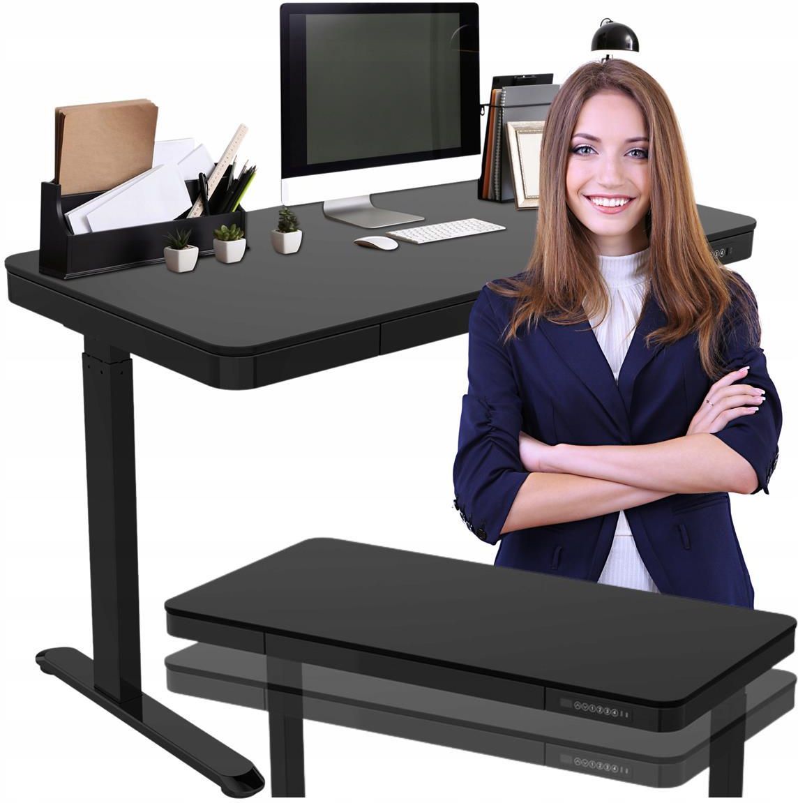 ELEKTRYCZNE BIURKO Z REGULACJĄ WYSOKOŚCI - USB, SZUFLADA, FUNKCJA PAMIĘCI WYSOKOŚCI Ergonomiczne biurko Velsen z elektryczną regulacją wysokości i inteligentnym panelem sterowania Nowoczesne biurko wyposażone jest w elektryczną regulację wysokości blatu, co pozwala użytkownikom dostosować je do swojej preferowanej pozycji pracy czy to siedzącej, czy stojącej. Aż 4 programy pamięci umożliwiają zapisanie ulubionych pozycji wysokości, a dzięki innowacyjnemu silnikowi biurko podczas regulacji pracuje niezwykle cicho. Mebel doskonale sprawdzi się w każdym biurze, gabinecie i pokoju ucznia. Szereg udogodnień takich jak porty USB, system antypoślizgowy czy pojemna szuflada, zapewniają komfort codziennej pracy i nauki. Dzięki wykorzystaniu w konstrukcji stali i wzmocnionego blatu, mebel posłuży niezawodnie przez wiele lat. Dla bezpieczeństwa użytkowania zastosowano odpowiednie elementy maskujące części ruchome i zasilające. Specyfikacja produktu Kolor: Czarny Wyposażenie: Port USB typu C i A Zasilanie: 100 V-240 V Maksymalna nośność: 45 kg Wysokość blatu: 72 cm - 122 cm Szerokość blatu: 120,4 cm Głębokość blatu: 60,4 cm Prędkość: 25 mm/s Decybel: Poniżej 50dB Zakres regulacji: 50 cm Funkcje: 4 programy pamięci Elektryczne biurko z regulacją do pracy siedzącej i stojącej Biurko do pracy siedzącej i stojącej to innowacyjne rozwiązanie, które idealnie odpowiada współczesnym potrzebom. Wyposażone w elektryczną regulację wysokości blatu w zakresie 72 do 122 cm, umożliwia użytkownikom łatwe dostosowanie go do preferowanej pozycji pracy. Czy to potrzeba wygodnego siedzenia przy komputerze, czy chwila niezbędna na pracę w pozycji stojącej, to biurko bez trudu dostosuje się do indywidualnych wymagań. Idealne dla osób w różnym wieku i o mocno zróżnicowanym wzroście, zapewniając optymalną ilość miejsca na zachowania ulubionej pozycji. Dzięki szybkiej i płynnej regulacji pulpitu użytkownicy mogą cieszyć się ergonomicznym miejscem pracy, które wspiera ich zdrowie i komfort przez cały dzień. Inteligentny panel sterowania z programatorem pamięci Innowacyjny panel sterowania z programatorem pamięci to przełomowe rozwiązanie dla nowoczesnych biurek. Dzięki możliwości zapisania aż 4 programów pamięci, użytkownicy mogą łatwo dostosować wysokość biurka do swoich preferencji. Funkcja programatora umożliwia wygodne przełączanie się między ulubionymi ustawieniami, co jest szczególnie przydatne dla wielu osób dzielących jedno biurko. Inteligentny panel sterowania sprawia, że obsługa jest niezwykle prosta nawet dla użytkowników niezaznajomionych z technologią, zapewniając wygodę i efektywność pracy. Zintegrowane porty USB typu A i C Zintegrowane porty USB typu A i C to wygodne rozwiązanie, które czyni biurko nie tylko ergonomicznym, ale także funkcjonalnym. Dzięki obecności tych portów użytkownicy mogą łatwo ładować swoje urządzenia elektroniczne bez konieczności korzystania z dodatkowych adapterów czy gniazdek. Porty USB zapewniają wsparcie dla różnorodnych urządzeń, od smartfonów po tablety i komputery, umożliwiając ładowanie ich w wygodny i efektywny sposób. To idealne rozwiązanie dla osób, które cenią sobie zarówno wygodę, jak i funkcjonalność w codziennej pracy. Pojemna szuflada na niezbędne akcesoria Pojemna szuflada w blacie biurka stanowi nieodłączny element wyposażenia. Dzięki niej użytkownik może przechowywać wszystkie potrzebne do pracy narzędzia i akcesoria w jednym miejscu, co sprawia, że są zawsze pod ręką i łatwo dostępne. To nie tylko praktyczne, ale także wygodne rozwiązanie, które zwiększa efektywność pracy i organizację przestrzeni biurowej. Cicha i szybka praca dzięki technologii pojedynczego silnika Dzięki zastosowaniu technologii pojedynczego silnika biurko oferuje użytkownikom płynną regulację wysokości przy zachowaniu pełnej stabilności. Co więcej, charakteryzuje się wyjątkowo cichą pracą - poniżej 50 dB, co sprzyja koncentracji i komfortowi użytkowania. Dodatkowo szybkość regulacji wynosząca 25 mm/s zapewnia sprawną i efektywną zmianę położenia blatu, umożliwiając dynamiczne dostosowanie biurka do aktualnych potrzeb użytkownika. To oznacza szybsze przejście pomiędzy pozycją siedzącą a stojącą, ale również sprawia, że biurko jest idealnym towarzyszem pracy zarówno w biurze, jak i w domowym środowisku. Niskie zużycie energii Oszczędność energii jest jednym z kluczowych czynników, którymi kierują się dzisiejsi klienci przy wyborze biurek z elektryczną regulacją. Dzięki zastosowaniu innowacyjnych mechanizmów, biurko zużywa prąd wyłącznie wtedy, gdy jest to konieczne. Nowoczesne rozwiązania techniczne zastosowane w konstrukcji mebla sprawiają zatem, że zużycie energii podczas codziennego użytkowania pozostaje na minimalnym poziomie. Instalacja biurka jest wyjątkowo łatwa i możliwa w każdym pomieszczeniu, ponieważ mebel zasilany jest ze standardowego gniazda sieciowego o napięciu 230 V. Niskie zużycie energii sprawia, że biurko będzie rozwiązaniem idealnym dla osób, które w szczególny sposób dbają o środowisko naturalne. System antykolizyjny dla bezpieczeństwa codziennej pracy Zastosowanie systemu antykolizyjnego do elektrycznego biurka stanowi kluczowy krok w zapewnieniu bezpieczeństwa i komfortu podczas codziennej pracy. Ten innowacyjny mechanizm skutecznie eliminuje ryzyko przypadkowego przemieszczenia, co z kolei minimalizuje potencjalne zagrożenia dla użytkowników. Dzięki niemu łatwo skupić się na wykonywaniu zadań, mając pewność, że środowisko pracy jest bezpieczne i funkcjonalne. System antykolizyjny nie tylko chroni przed potencjalnymi urazami, ale również poprawia efektywność pracy, umożliwiając swobodne korzystanie z biurka bez obaw o niechciane incydenty. Solidny blat i stalowe wzmocnienia konstrukcji Blat biurka oraz s