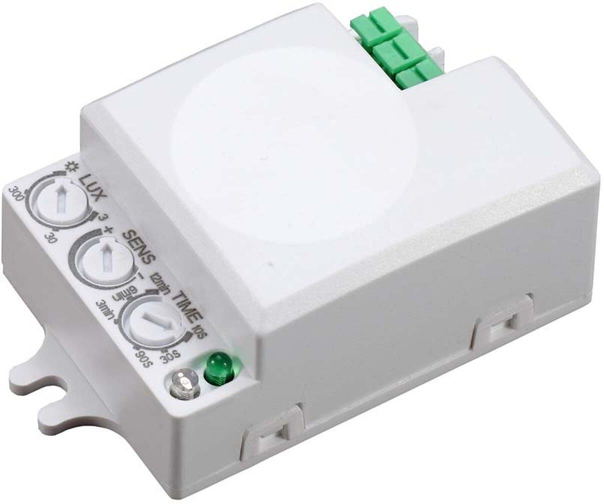 ​ MIKROFALOWY CZUJNIK RUCHU ORNO OR-CR-214 NAJWAŻNIEJSZE CECHY współpracuje z oświetleniem LED-owym rodzaj materiału: tworzywo sztuczne, regulacja: zasięgu, czasu świecenia, natężenia światła dostępne kolory: biały Charakterystyka Mikrofalowy (radarowy) czujnik ruchu jest aktywnym detektorem ruchu - zintegrowany element pomiarowy wysyła elektromagnetyczne fale wysokiej częstotliwości i odbiera ich echo. Czujnik wykrywa zmiany w echu wywołane nawet najmniejszym poruszeniem w obserwowanym obszarze. wbudowany czujnik zmierzchowy i przekaźnik czasowy, przeznaczony do zabudowy w oprawach oświetleniowych, detekcja ruchu przez szkło, tworzywa sztuczne, płyty kartonowo-gipsowe, brak wpływu temperatury na detekcję płaska obudowa umożliwia montaż w puszce podtynkowej Specyfikacja techniczna zasilanie: ~230V/50Hz max. obciążenie: 500W stopień ochrony: IP20 kąt widzenia: 360° czas świecenia: min 10 sek.±3 sek. max 30 min.±2 min zasięg: 1 - 8 m. natężenie światła: <3 - 2000 lux wysokość montażu: 1,5 - 3,5 m częstotliwość: 5,8 GHz emisja mocy: <0,2mW temperatura pracy: -20°C~+40°C wymiary: 58x25,5x40,5 mm (szer./wys./gł.)