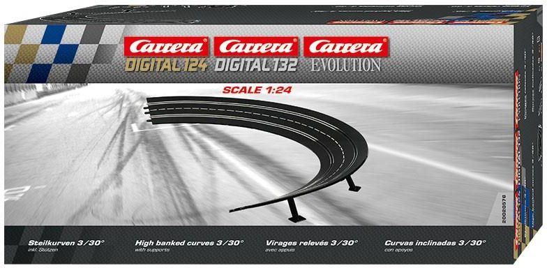 Akcesoria do torów CARRERA DIGITAL 132 - Zakręt pochyły 3/30 6szt. daje łaczy łuk 180 stopni Carrera DIGITAL 132 to seria, w której tory wykonane są w skali 1:24, natomiast samochody w skali 1:32. Jednocześnie mogą uczestniczyć tutaj w wyścigu aż 6 samochodów. Radość i satysfakcję z rywalizacji …
