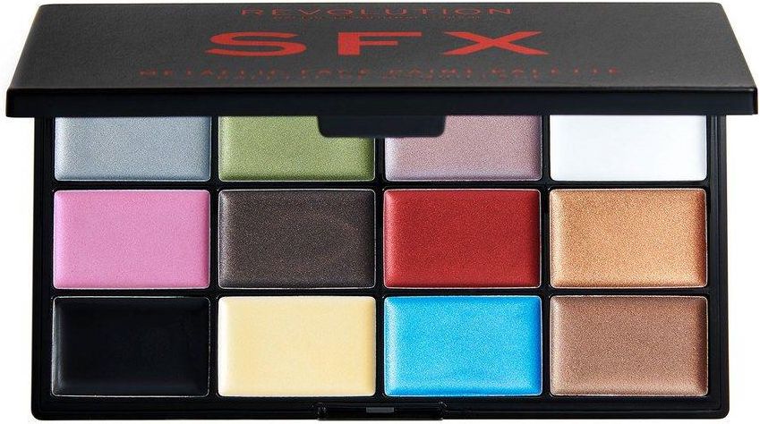 MAKEUP REVOLUTION Paleta 12 farb do twarzy Halloween Metallic Face Paint Najlepsza paleta farb do twarzy na Halloween! Stwórz najbardziej przerażające, przerażające i przerażające spojrzenia i przestraszyć wszystkich! Makeup Revolution Halloween Metallic Face Paint Palette profesjonalna paletka do …
